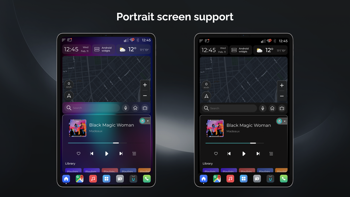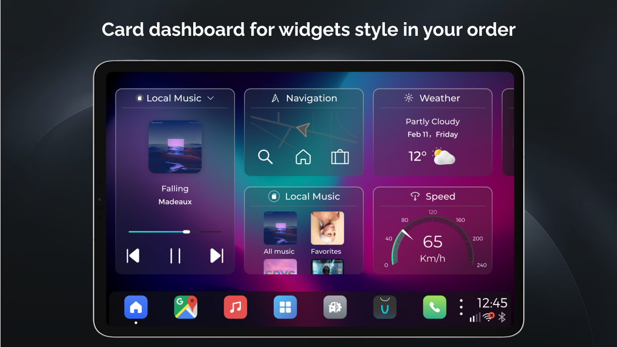 VIVID is a personalized multi-theme car launcher with handy features for your daily drive. It's designed neatly and beautiful, and the most important is very intuitive and easy to use. Here are the major features you're going to find out in VIVID: * Classic dashboard with split screen - It applies a split home screen for the most important 2 features while you're driving, Maps and Media, so that you don't have to jump back and forth among apps. And you can also easily access to the recent apps from the bottom bar. * Card dashboard - Show card widgets by your order, most frequent used features available and keep updating by users' request. * Navigation - Google Maps, Waze, Amigo, iGo, no matter what navigation apps you're using, once you used it, it will stay at the bottom bar as your default Maps app. * Media - Highly customized UI for in-vehicle scenarios, and it's compatible with any standard media browse services, Spotify, Amazon music, DAB-Z etc. Auto play when startup also supported as you like in in vivid setting * Hardware Integration - Integrated with HCT and some of other aftermarket infotainment devices, you can use native radio and Bluetooth call, music, and even SMS * Phone - Highly customized UI for phone calling, it's simple and just works! Especially while you're in a navigation session. * Radio - Highly customized UI for Radio app if your headunit hardware is supported, such as PX6, PX5. * Google voice assistant - Google voice assistant supported and integrated if your device installed Google assistant well. * Valet lock screen - lock screen with password for you to protect your personal information when in valet time, washing car etc. * Multiple theme - Multiple dashboard layout for your choices. Fancy dynamic blur UI, changing wallpaper changing all the look and feel. * Weather support - lock screen with password for you to protect your personal information when in valet time, washing car etc. * OTA - Frequently update version over the air. * Android widget support - add android native widgets of the apps you like * Customize Splash - use any splash images as you like There are lots of other features for your to find out~ enjoy your drive with VIVID
