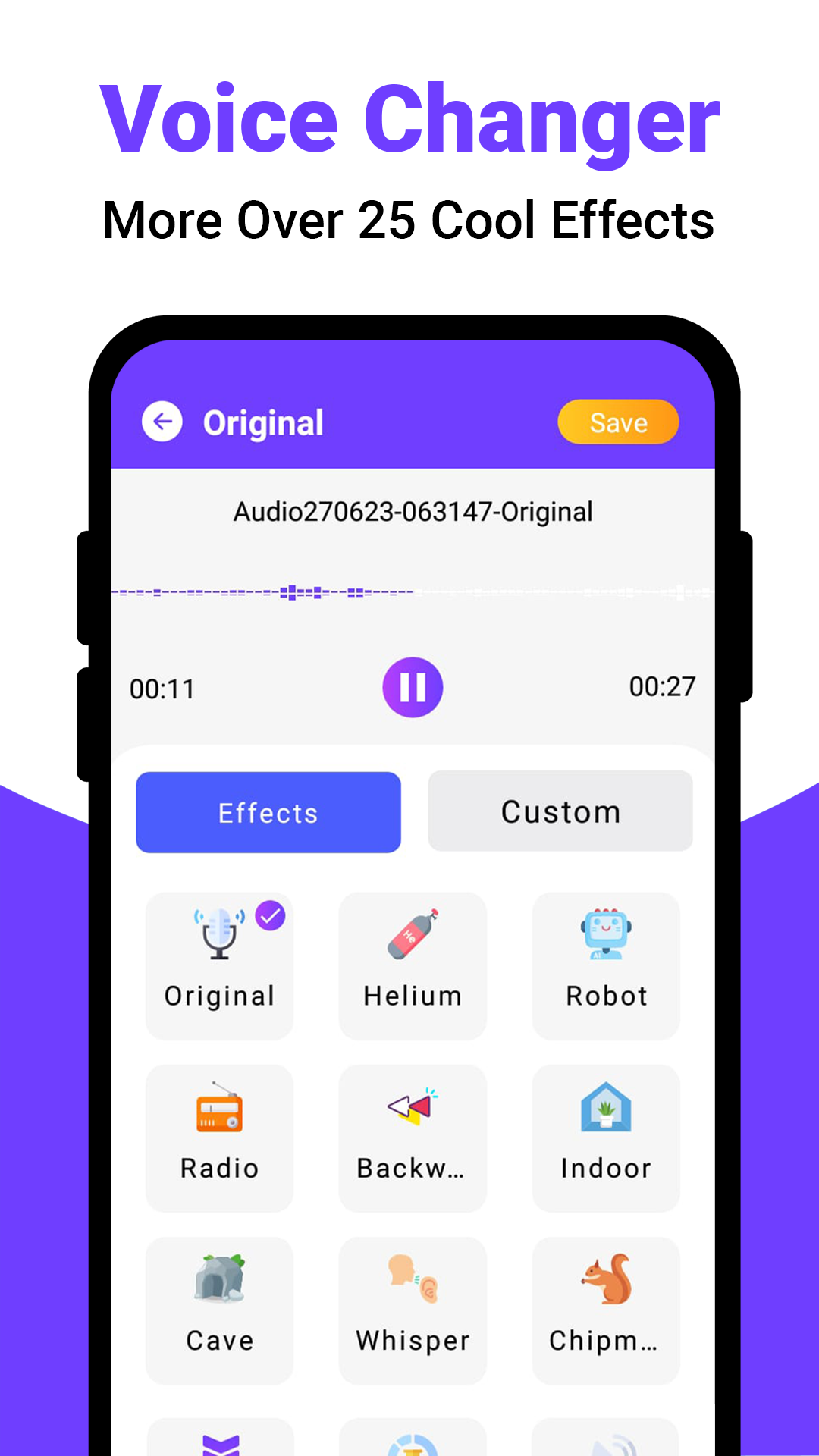 Voice Changer (Package Name: com.voice.changer.effects) is developed by Cresent App Studio and the latest version of Voice changer : Voice effects 2.3 was updated on November 18, 2025. Voice changer : Voice effects is in the category of Tools. You can check all apps from the developer of Voice changer : Voice effects. Currently this app is for free. This app can be downloaded on Android 7.0+ on APKFab or Google Play. All APK/XAPK files on APKFab.com are original and 100% safe with fast download.