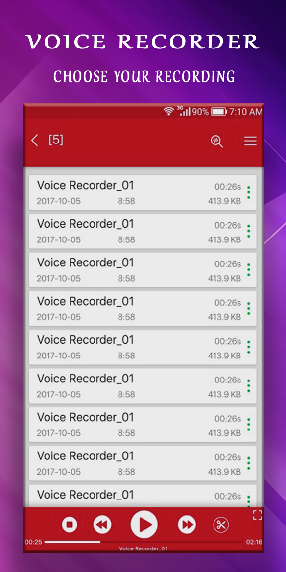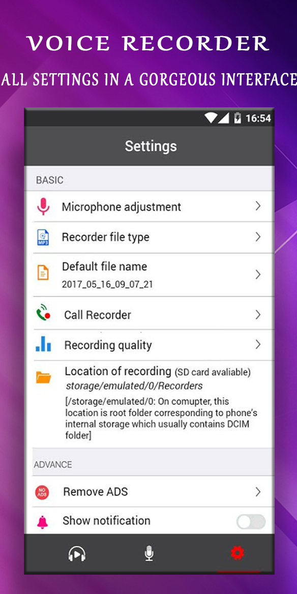 Read the description of a voice recording program before downloading Voice Recorder - Audio Recorder Voice Recorder - Audio Recorder Free time standard voice recorder, complete, very well designed and easy to use audio recording application for humanoid. Our sound recorder provides high quality recordings with no time limit (only limited by the size of the memory). You can use it as a regular Dictaphone to record voice notes and memos, business meetings, interviews, lectures, speeches, concerts, sleep talking :) or any other selected. This audio recorder works well metropolis smartphones and tablets, with or without external storage. 2020 Voice Recorder - 2020 Audio Recorder More features 2020 and DE details • Voice recorder 2020: Oven different audio formats: MP3, PCM high quality (wav), AAC quality (m4a / mp4) and AMR (3gp) to save space • 2020 Audio Recorder: Adjustable sampling rate From phone quality (8 kHz) to CD quality (44 kHz) • Variable bit rate FROM thirty two to 320 kbps • Audio Recorder :Direct Noise Audio Spectrum Analyzer • Recording 2020 nut background even when the standard time off screen •Audio Recorder : written customizable record record • Audio Recorder :selectable audio supply (microphones or phone call) NOTE: This app is NOT a dedicated voice recorder and may not work properly for some metropolis devices. • voice recorder 2020 inherent good-time media player as in a regular mp3 player • voice recorder 2020: Send and share via e-mail and other applications • voice recorder 2020 Rename and delete your recordings • Set recording as ringtone, alarm or notification sound • voice recorder 2020 Open with possibility lets you play and edit sounds in other applications • 2020 voice recorder Control the 2020 recorder and autoimmune disorder player from the status bar • 2020 Audio Recorder: signalization Flashing lights during recording and playback when the standard time-out screen is off (for devices with a semiconductor notification diode) • Recorder 2020: Automatic stop nut Memory loss case • 2020 Audio Recorder: Sort Records by Date, Name, Size, and Duration • 2020 Recorder: Recording sounds in the android media library # Available in 13 different languages English, Spanish, French, German, Portuguese (UK) Portuguese, Italian, 中文 (Simplified), Русский, 日 日本語,, 국어.
