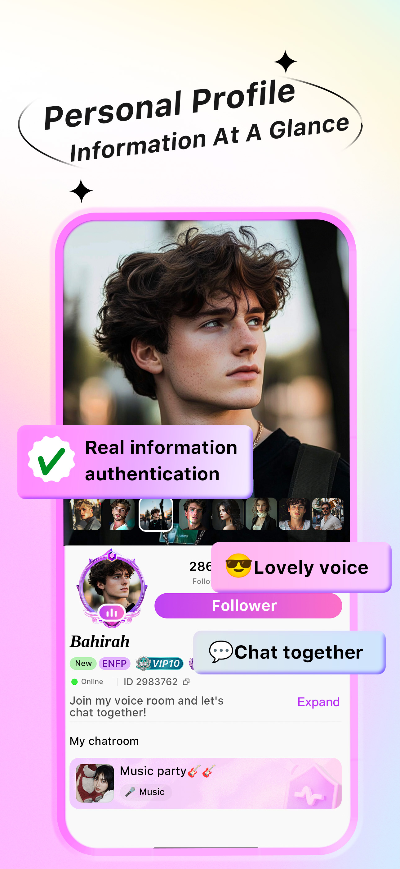 Piko - There are always those who understand you here. Here, we believe that every individual is a unique existence, with wonderful stories and interesting pals. Here, you can open your heart, and we will listen attentively to every word you say and enjoy a natural, relaxed, healthy and beautiful life together. [Online party] Real people are online, reply instantly with care, providing sincere companionship anytime and anywhere. [Voice chat freely] High-definition video, lossless sound quality, open the door of destiny and unlock your right fate. Let's start a wonderful voice journey at Piko!
