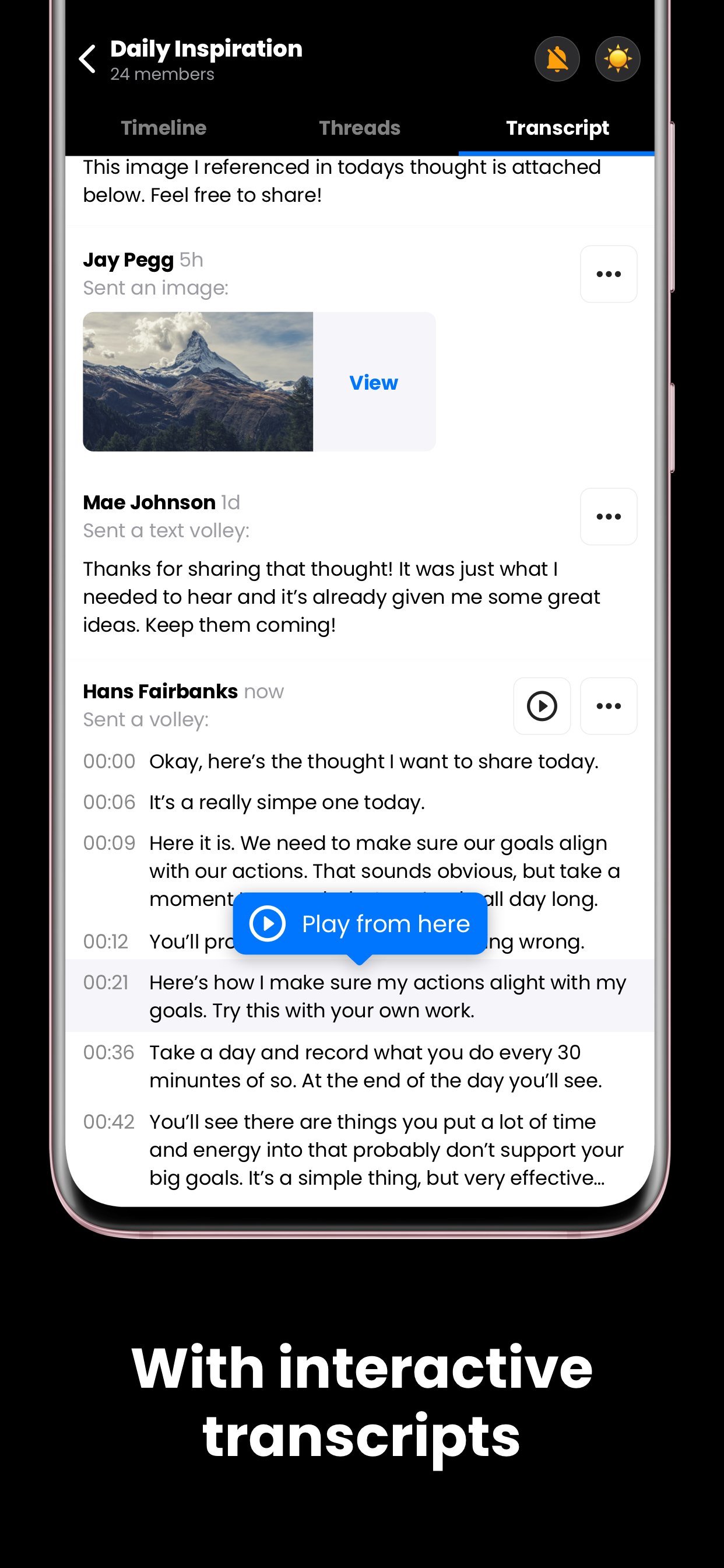 Unlike social feeds like Facebook or Circle – Volley allows you to talk with your community instead of merely posting at them.
