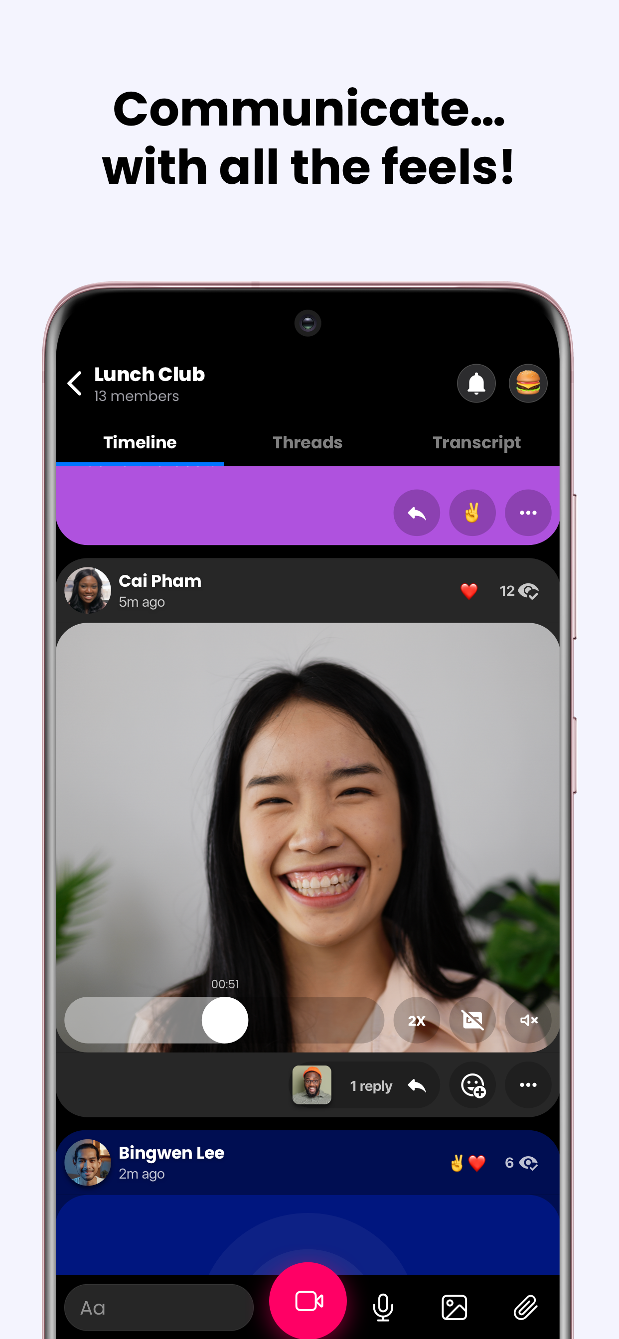 Unlike video conferencing tools like Zoom or FaceTime – Volley is asynchronous, which means you can participate on your own time without having to coordinate schedules or book your time.