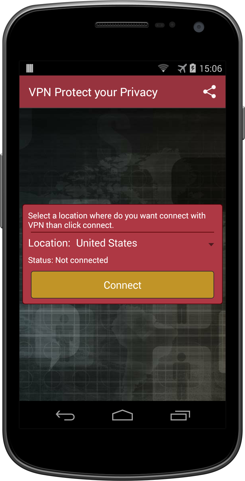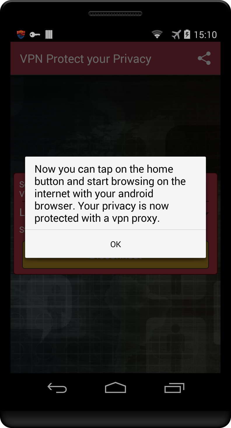 VPN Protect your Privacy (Package Name: com.vita.vpn.free.proxy) is developed by vita and the latest version of VPN Protect your Privacy 1.1 was updated on January 8, 2015. VPN Protect your Privacy is in the category of Productivity. You can check all apps from the developer of VPN Protect your Privacy. Currently this app is for free. This app can be downloaded on Android 4.0+ on APKFab or Google Play. All APK/XAPK files on APKFab.com are original and 100% safe with fast download.