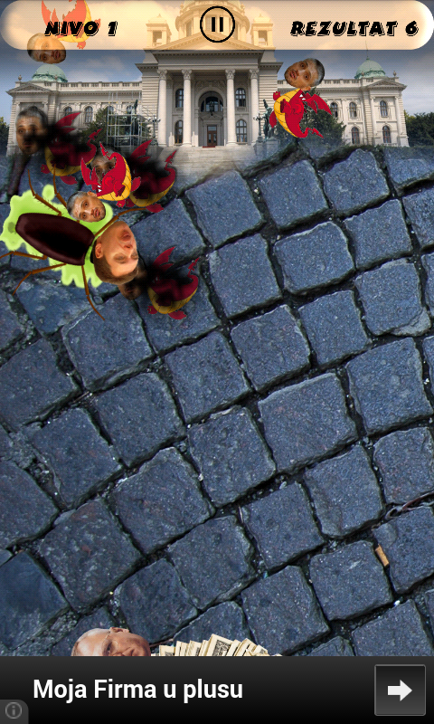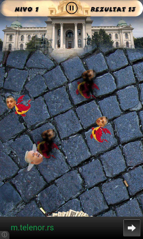Ova igrica vam omogućava nešto što u realnom životu nikada nećete moći da uradite - da sprečite političare da dođu do para. Pratite nas na za najnovije update-e. twitter: https://twitter.com/VragHag FB: https://www.facebook.com/VragHag Utepajte Čedu, Tomu, Dinkića, Tadića i ostale dok pokušavaju da se domognu novčanica i izbegavajte Šešelja. Igrajte i takmičite se sa drugim igračima ko će osvojiti više poena u ovoj zabavnoj igri. U novoj verziji još političara uskoro! Glasajte ovde za nove likove http://goo.gl/Sl8qud Svaka sličnost sa stvarnim likovima je sasvim slučajna. Igrica je šaljivog karaktera i nije namenjena nikog da uvredi. IGRA NEMA ZA CILJ VELIČANJE NI JEDNE STRANKE, BAŠ SUPROTNO. Dodajte prijatelje na Google Plus-u i moćićete da vidite njihove rezultate u igri klikom na ikonu trofeja. Neki od zvukova preuzeti su sa http://www.freesfx.co.uk