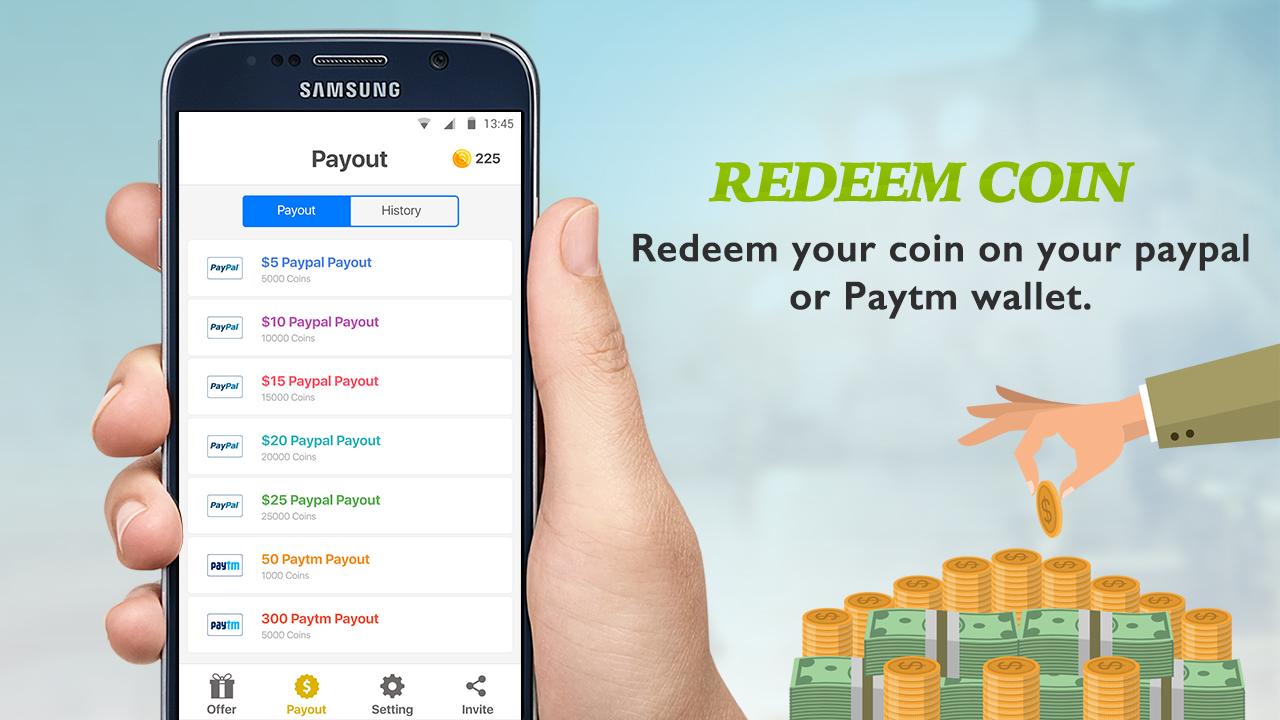 3) Redeem your Coins for cash via PayPal or Paytm.