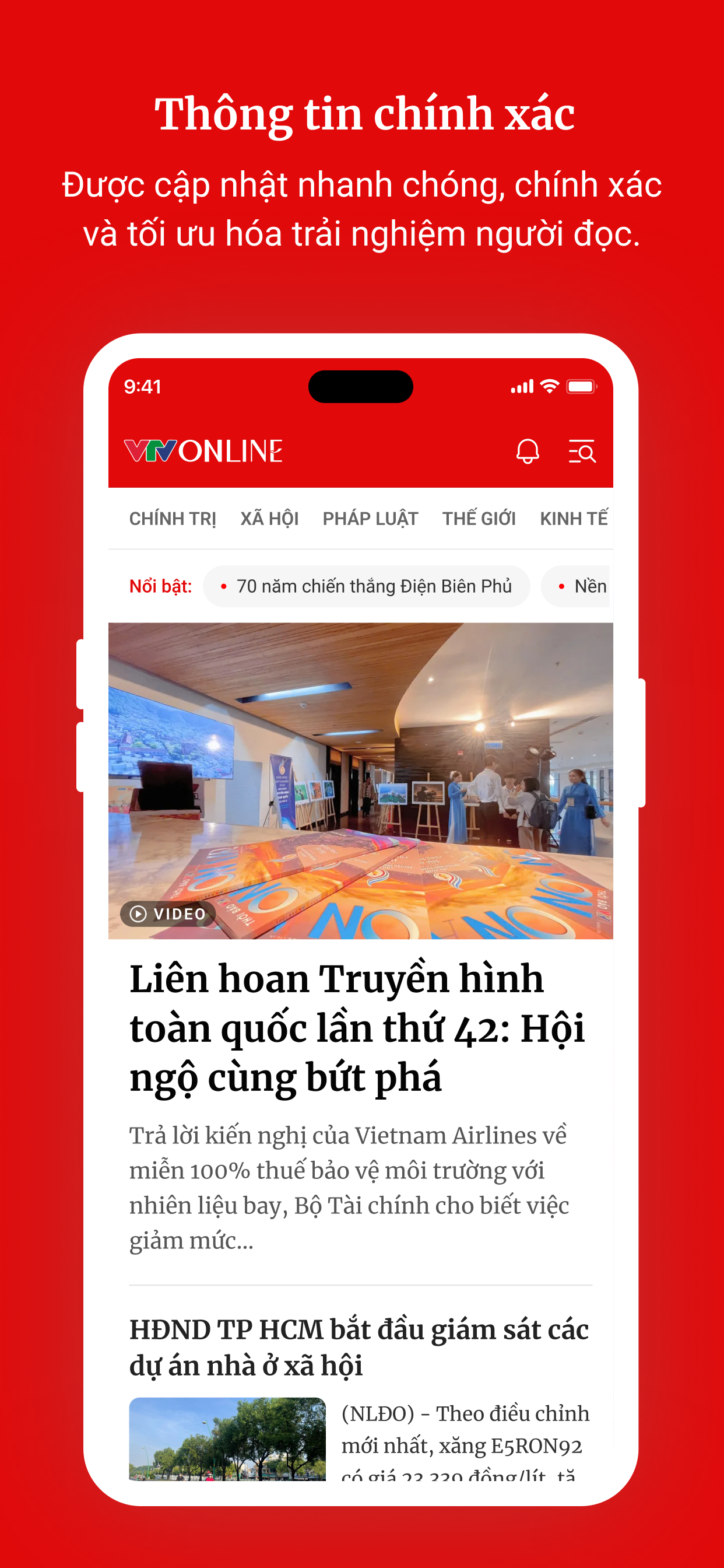 Đây là ứng dụng đọc tin được phát hành bởi Báo điện tử VTV Online - Đài Truyền hình Việt Nam. VTV Online (www.vtv.vn) là báo điện tử chính thức của Đài Truyền hình Việt Nam, có hệ thống truyền hình trực tuyến tất cả các kênh quảng bá của VTV và kho video clip với nhiều thể loại chương trình truyền hình đã phát sóng trên các kênh VTV1, VTV2, VTV3, VTV4, VTV6, VTV9... như: Thời sự, Kinh tế, Phim tài liệu, Thể thao, Giải trí,... Hệ thống truyền hình trực tuyến và kho video clip này có lượng độc giả truy cập hàng ngày lớn nhất Việt Nam hiện nay. Là báo điện tử chính thức của Đài Truyền hình Việt Nam, VTV Online mang đến cho độc giả những thông tin "Chính thống - Tin cậy - Tương tác - Đa phương tiện" về mọi mặt và lĩnh vực của đời sống xã hội. Đội ngũ làm báo của VTV Online luôn sẵn sàng 24h/24h để cung cấp những thông tin đắt nhất, với tiêu chí nhanh nhất, mới nhất được xã hội quan tâm và đón đọc hàng ngày, hàng giờ. VTV Online (www.vtv.vn) đã và đang là địa chỉ cung cấp thông tin đa phương tiện được yêu thích nhất tại Việt Nam. Các tính năng chính của ứng dụng đọc tin Báo điện tử VTV Online: • Update tin mới tự động, liên tục; • Tin tức hiển thị theo thứ tự mới nhất hoặc theo các chuyên mục; • Thao tác lướt trên màn hình mượt mà giúp đọc tin nhanh; • Xem ảnh theo slide; hình ảnh được điều chỉnh phù hợp với màn hình smartphone; • Bình luận, cập nhật trao đổi tin tức dễ dàng, nhanh chóng; • Chia sẻ tin tức qua email, Facebook, Twitter, Linkhay...