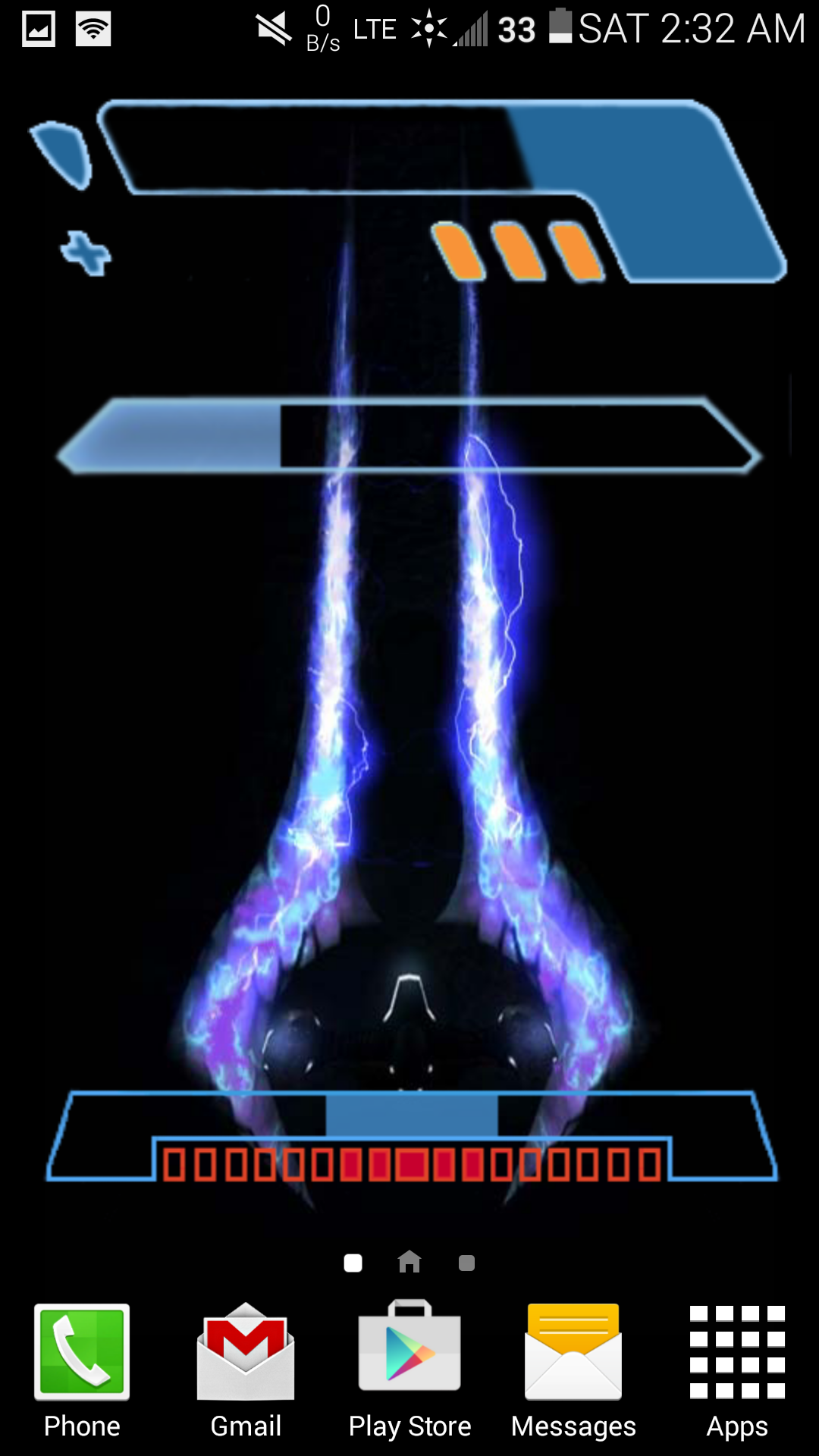 This live wallpaper can change colors based on your phones current battery percentage, to any set color, or change the color when screen clicked. You can change the speed of the animation, change the charging color, and much more. Stays at default color: 100%-70% Pulses Blue: 69%-60% Pulses Green: 59%-50% Pulses Yellow: 49%-40% Pulses Red: 39%-0% If you like this app please rate it! If you have any problems please email me an I will do my best to solve the issue. If you don't like the app for any reason email me and I will gladly give you a full refund :) More cool halo apps: https://play.google.com/store/apps/developer?id=Fast+Fish+Development