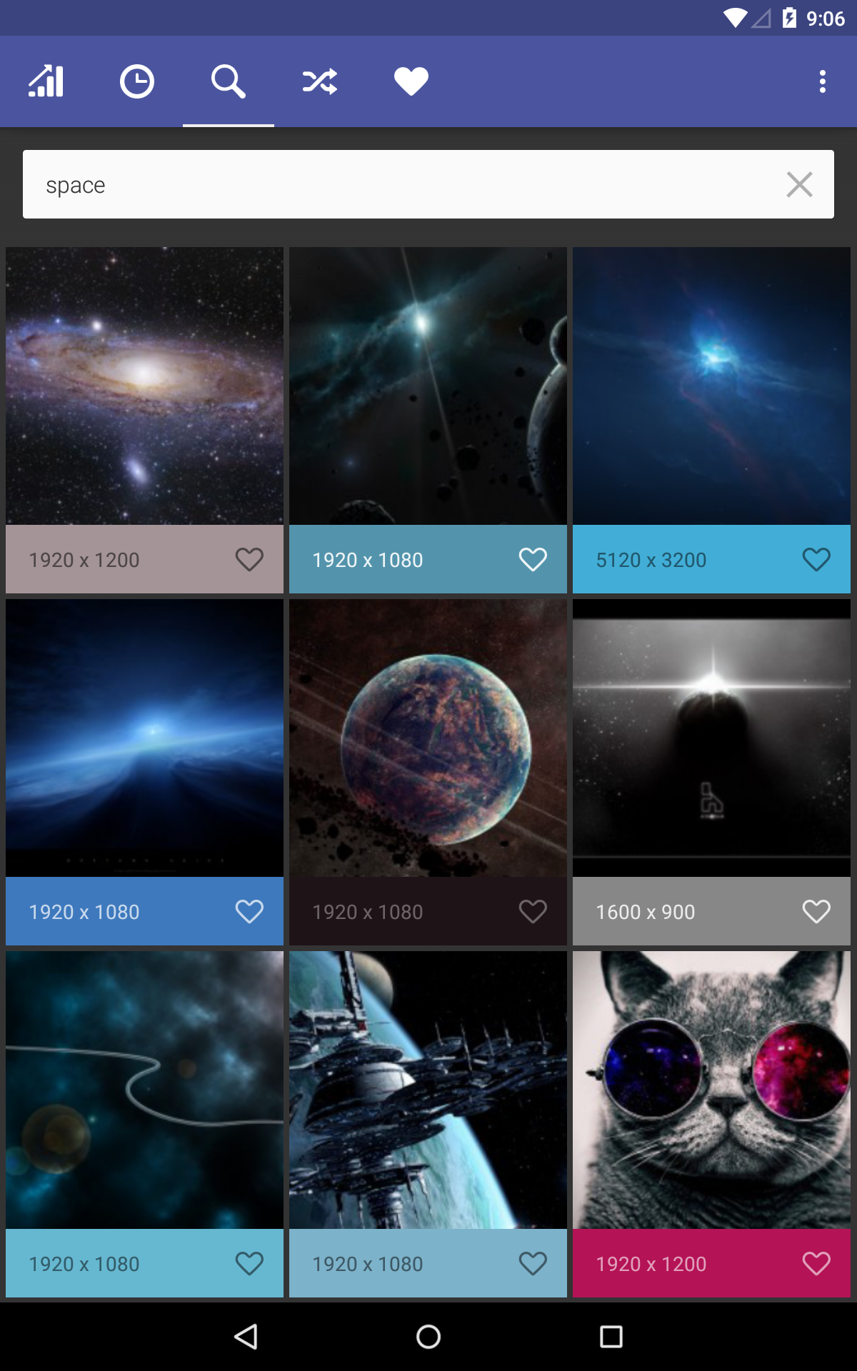 • Filter wallpapers by categories, resolution, and/or aspect ratio