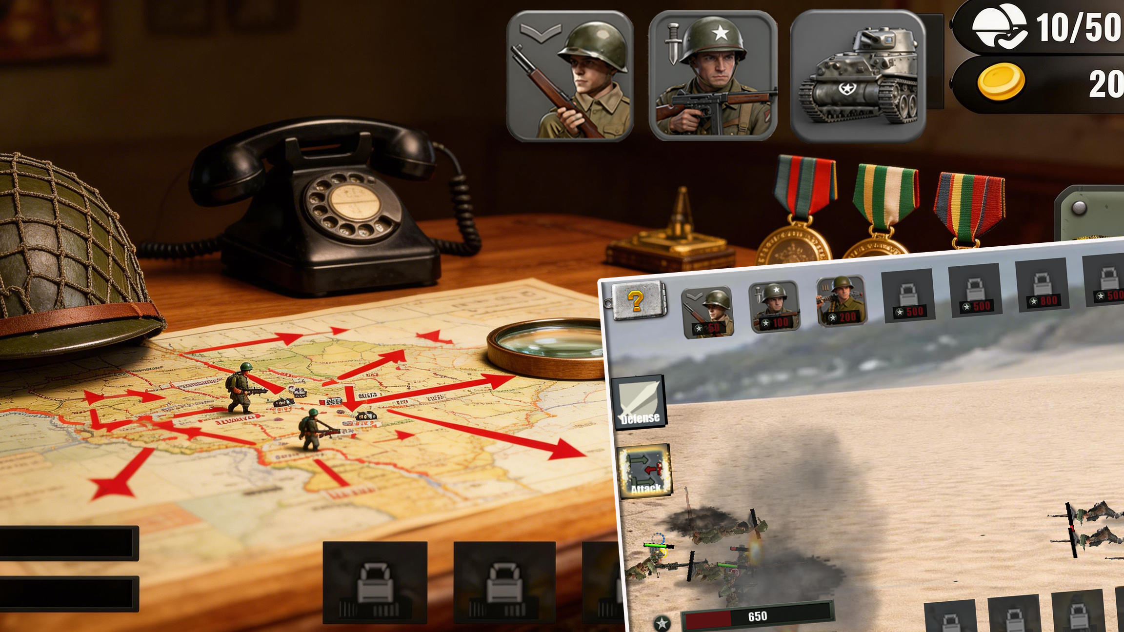 Become the commander of troops and assault the enemies in trenches in World War 2 game! Climb up the levels to unlock new military units including Assault soldiers, Officers, Flamethrowers, Snipers, Artillery, Machine gunners, Gas Masks, Mark V tanks, Fighter Jets and military equipments. Devise a trench military war strategy that will bring your enemies to their knees! This trench assault warfare offers you epic defense gameplay with awesome pixel game graphics and sound effects, giving you an immersive experience of real world war trenches of British, German, and French Regimes. The World War 2 warfare 1941 game is all about trench warfare. If you are a military enthusiast, this game is for you. You will enjoy this game equally as pro gamer or a casual player looking for a good game for time pass. War Troops is a fast-paced trench assault strategy game. You are the captain, and your objective is to capture enemy trenches. Be ready for War! Climb up the levels to unlock exiting new troops and military equipments. You can use officers, soldiers, artillery, bunkers, snipers, machine gunners, trucks, bazooka, mine, smoke, a tank, and many more. The goal is to cross the battlefield and capture all the enemy trenches. Doing so will require careful unit recruitment and strategic advancement timing to assault and capture all trenches. Units are recruited and controlled by pressing the buttons at the top and money trickles in automatically overtime and by eliminating enemies. Using artillery well, can be easy way to mastering the battlefield! Just remember, never give up and hold your trenches till the last one! Let the trench assault begin. Use planking and other strategies to reduce enemy morale and win the battlefields with air support. Do you have what it takes to be a World War II general? - 20+ levels of world war 2 locations - 8+ world war army units including special troops - Unique gameplay and sound effects to give real war immersive experience - Requires different strategies like planking, camping, bombing to capture enemy war field - D Day battles and enemy bosses - Powerful firepower weapons give you the best experience of strategy games. - Armored artillery, mortars, heavy weapons, fighter jets that appeared in World War 2. Take control of massive armies and clash with enemy soldiers in this legendary world war 1944 offline military games. WW2 Strategy and tactics games is the new strategy games and rapid tactical war games set during the turbulent period from 1941-1945. Relive the flame of the greatest battles of the world in this military strategy WW2 war games! Please leave great feedback - it helps us keep going!