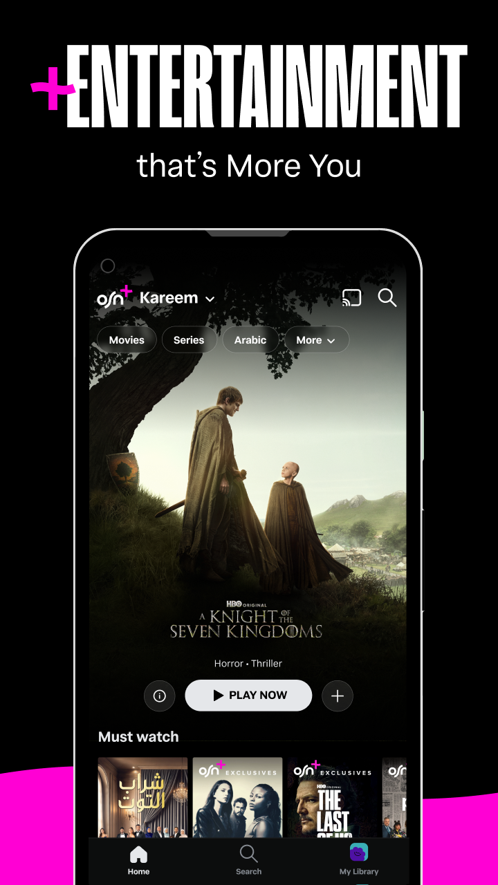 OSN+ is your go-to premium destination for streaming movies, series, Hollywood movies, Arabic movies, and more across 22 countries. Explore the latest movies, series and documentaries from giants like HBO, Paramount, Universal, Discovery+ along with OSN+ Originals, and many more. Whether you're keen on Arabic series, Turkish series, Hollywood blockbusters, DC Universe hits, or HBO Exclusive shows OSN+ has your entertainment appetite covered. Watch movies or watch series with Arabic dubbing and subtitling to suit your preference. Stream movies and shows from a collection featuring over 10,000 hours of premium content tailored for every family member. With OSN+, you're not just streaming, you can immerse yourself in the content and watch the movies and series you love, anytime, anywhere and on any device. • Stream exclusive, award-winning series. • Enjoy simultaneous US show releases. • Watch your favorite shows and movies in stunning 4K. • Create up to 5 profiles and stream on 5 devices. • Get personalised movie and series recommendations based on your preference. • Watch movies and shows with the kids using the dedicated KIDS mode, complete with parental controls. • Download and watch shows and movies offline. Classics on OSN+: Watch everyone's favorite HBO series like "The Sopranos", "Game of Thrones", "House of the Dragon", "The Last of Us" and much more. Trending on OSN+: Stream series like “The Gilded Age” Season 3 or “The Hunting Wives”, and movies like “Harry Potter” and "Joker". Make sure you don't miss the Turkish series: “One Love” and “Al Mushardoon”. Upcoming gems on OSN+: Don’t miss out on Hollywood movies like “Anora” and "Wicked", and upcoming hit series like “It: Welcome to Derry”, and others. With flexible subscription options, OSN+ allows you to stream movies, TV shows, and more online. No binding contracts or cancellation fees. For support, visit: https://help.osnplus.com/ For Terms & Conditions, visit: https://osnplus.com/terms To view our Privacy Policy, visit: https://osnplus.com/privacy