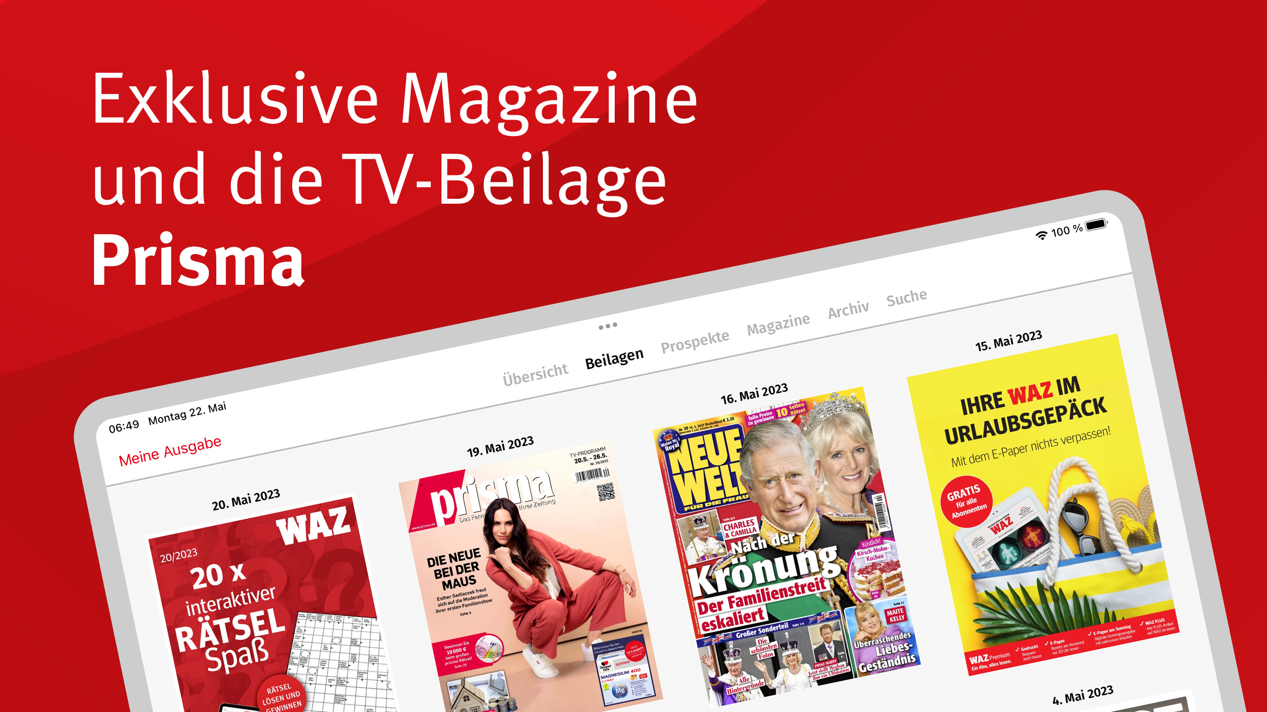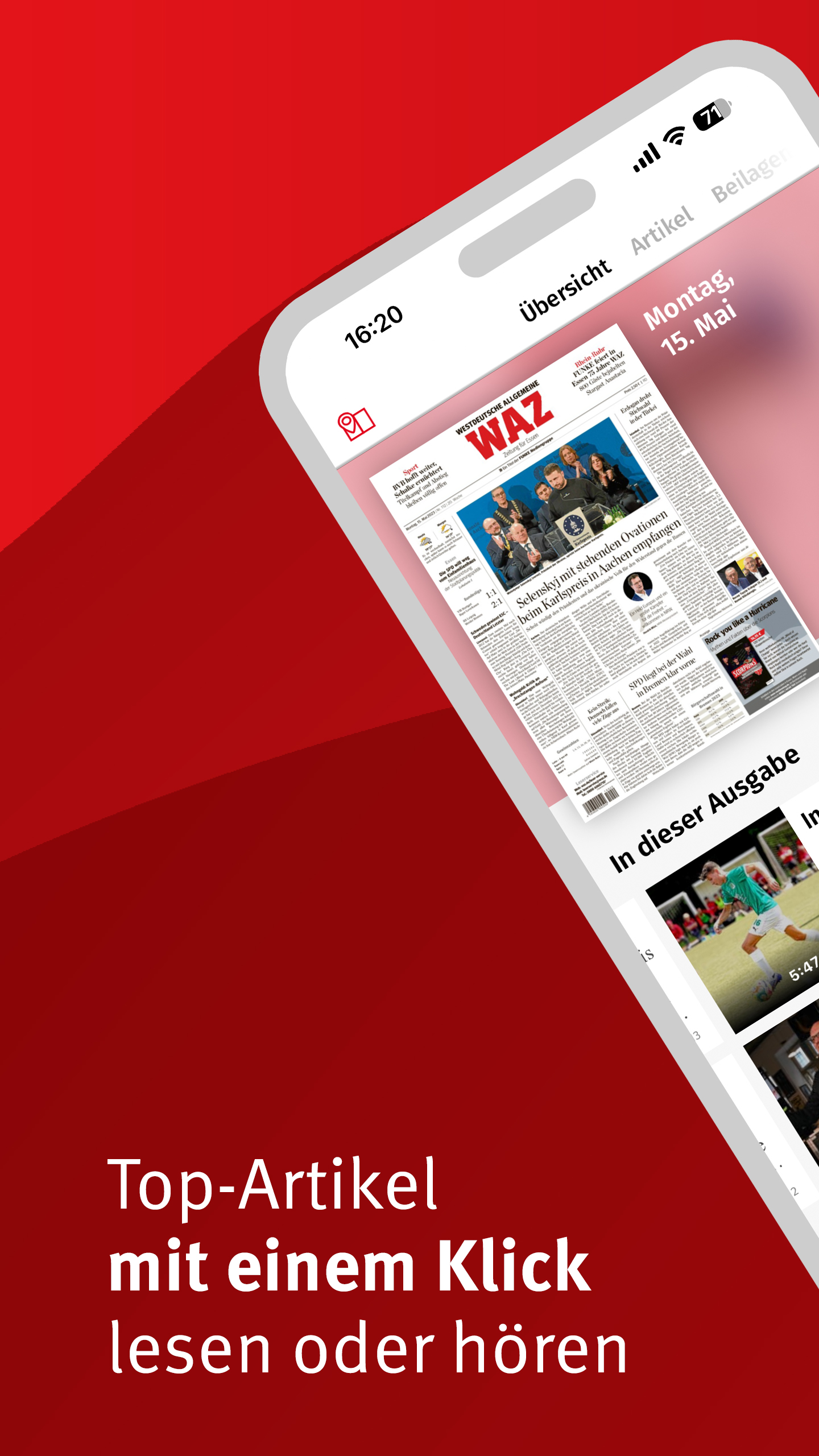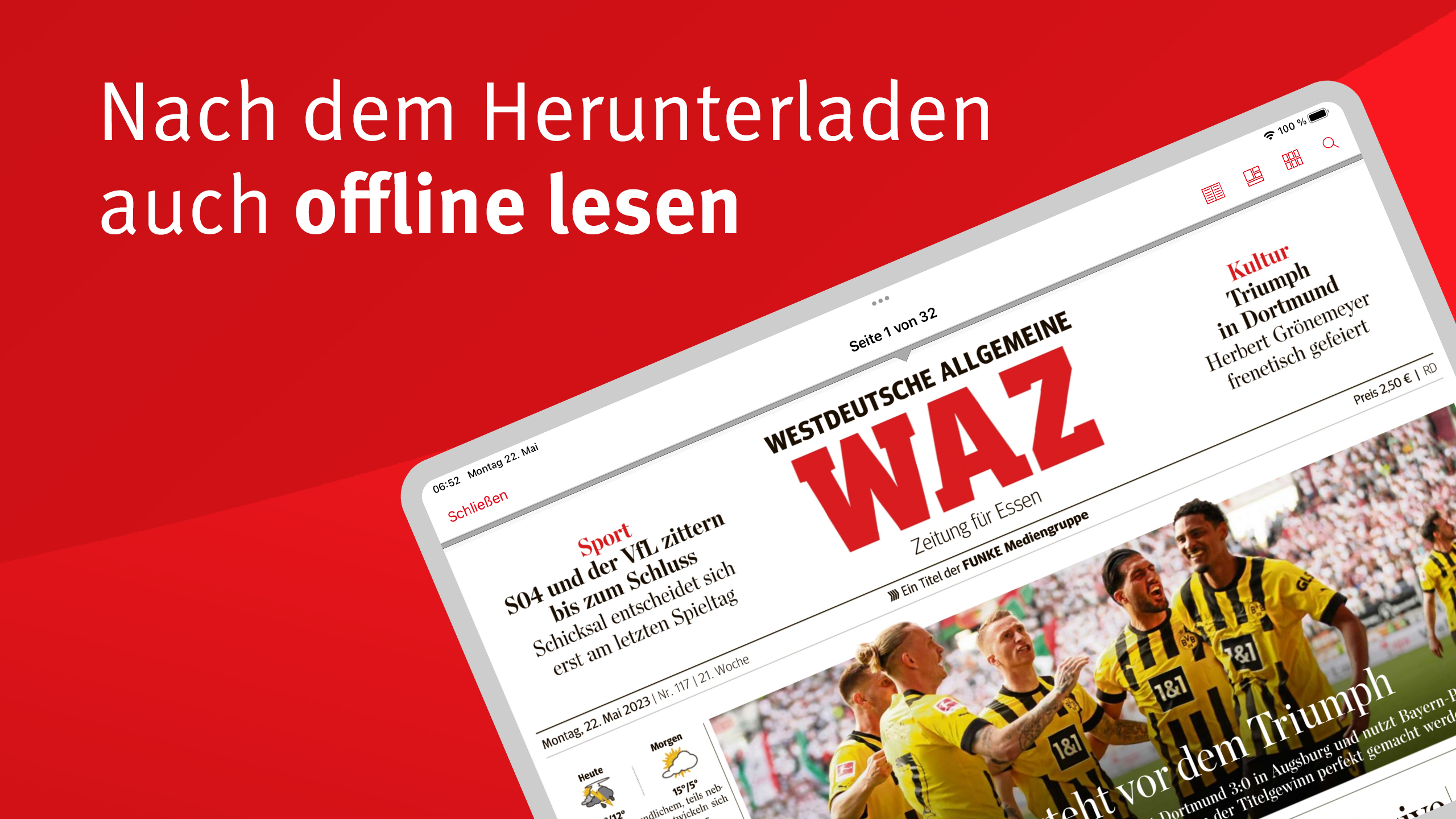 In your e-paper app you can read all local editions of your WAZ, including from other regions, such as WAZ Bochum, WAZ Witten, WAZ Duisburg or WAZ Herne.