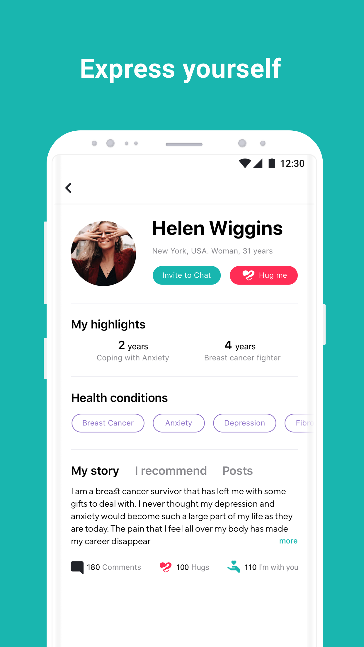 Get support from peers who understand your health conditions. Get motivated with Gratitude posts. Share & search for peer-recommended doctors and hospitals. Express yourself with creative highlights about your health. Tons of other features keep you engrossed in an empathetic environment.