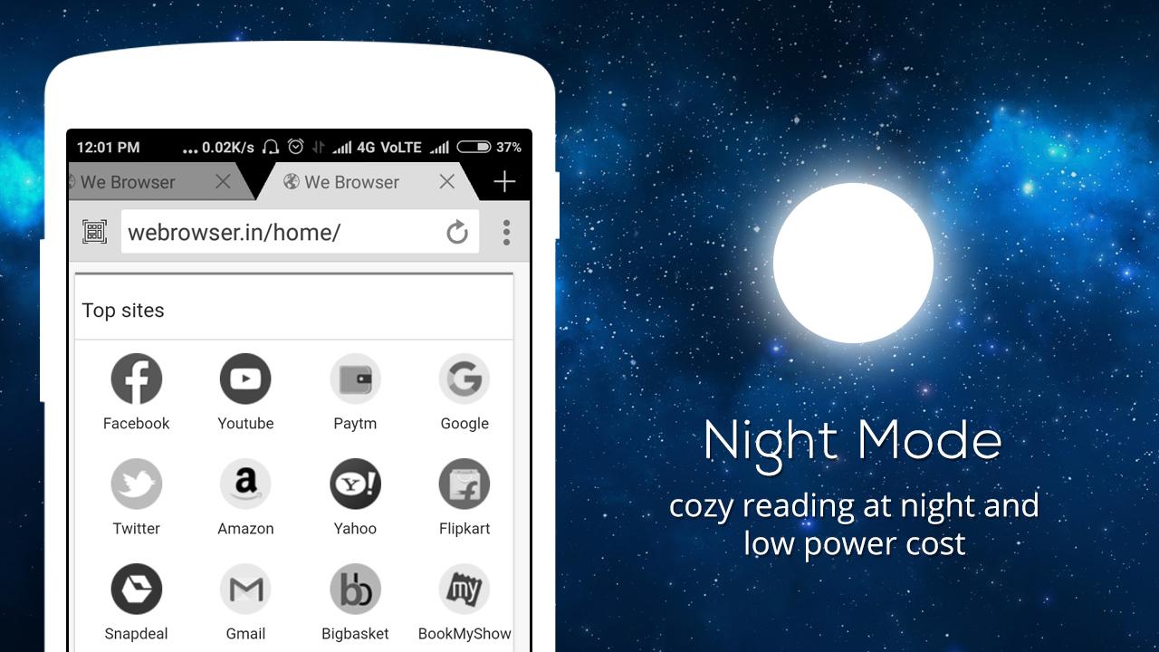 We Browser is number 1 web browser for super fast download & surfing data on Android device
