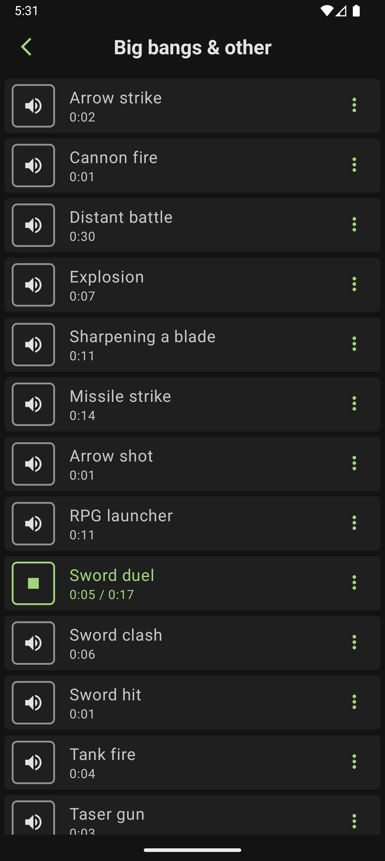 Experience a wide range of powerful audio with Weapon and Gun Sounds. This free app puts an arsenal of high-quality audio right at your fingertips, extending beyond just firearms. Search no more for impactful sound effects – from the booming blast of a shotgun to the sharp crack of a handgun, the futuristic hum of sci-fi weaponry, the clash of swords, the whoosh of arrows, the might of cannons and tanks, and more, we've got you covered. Whether you're a gun enthusiast looking for diverse SFX, or simply curious about a weapon sounds, this app is your go-to resource. Dive into a massive collection of authentic and exciting sound effects, including: Pistols: Explore a diverse range of handguns, from classic revolvers to modern semi-automatics. Rifles: Hear the distinct reports of hunting rifles, assault rifles, and sniper rifles. Shotguns: Feel the rumble of pump-action shotguns and the thunderous roar of double-barreled shotguns. Machine Guns: Experience the rapid-fire chatter of iconic machine guns from around the world. Sci-Fi Sounds: Discover a range of futuristic weapon effects, energy blasts, and more. Historical Sounds: Explore the powerful booms of cannons and the rumble of tanks. Melee Sounds: Hear the sharp clang of swords and the swift flight of arrows. And More! Explore a vast library of grenades, explosions, and other intense weapon sound effects alongside a growing collection of diverse audio. Key Features: Massive Sound Library: Discover a comprehensive collection of gun sounds and other exciting audio, meticulously recorded and mastered for exceptional quality. High-Definition Audio: Immerse yourself in crystal-clear, realistic sound effects in high-quality MP3 format. Easy Navigation: Browse and select your favorite sounds effortlessly with our intuitive user interface. Personalization: Set your favorite sounds as ringtones, notifications, or alarms to add a unique touch to your device. Dive into the expansive soundscape of Weapon and Gun Sounds today! From the raw force of firearms to the futuristic echoes of sci-fi and the clang of historical battles, discover a universe of captivating audio waiting to be explored. Perfect for anyone craving high-quality sound experiences.