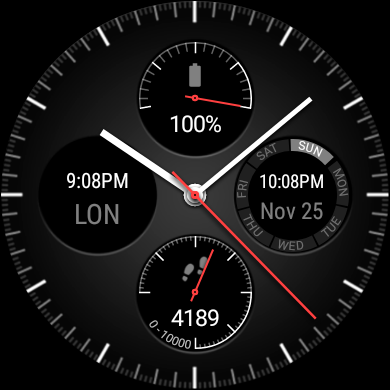 This analog watchface will show you 4 customizable complications with a lot of features:★ 9 different background images