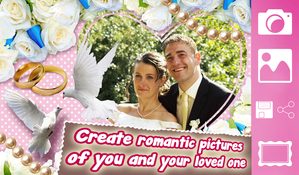 ❤ You have a bunch of wedding photos to frame? Here are some awesome wedding photo frames! Surprise your loved one with cute pics of your wedding day with this fun photo editor! Let every day be your honeymoon with these romantic photo frames! Download ❤ Wedding Photo Frames-Love Pics ❤ and celebrate love and marriage! Your honey-pie will love your cute pics! ❤❤❤❤❤Features: Easy to use interface! 30 beautiful picture templates! Choose cute wedding photos from your gallery! Frame your pics with love photo frames! Share your wedding pictures! More romantic photo frames coming soon! ❤ You must enjoy your sweet marriage days, so here's a way to enjoy even more! Download this romantic photo app, upload your wedding pics and apply these lovely wedding picture frames. You know what's even better – choose some funny pics from your wedding day, modify photos with this fun "image editor", print them out, and put them in your living room! Let the feelings of love and joy overwhelm your whole being every time you look at the love pictures of you and your sweetie! ❤ Whenever you feel imaginative and creative, you can experiment with these beautifully designed love photo frames. With the help of this lovely image editor, you will design your wedding pics with lovely and romantic photo effects that we've created especially for you! So, all of you love birds, don't hesitate! Inspiring art is waiting for you! Download Wedding Photo Editor-Funny Pics and let your imagination flow free with this HQ photo editing! ❤ You are in love, aren't you? You know that love is the most profound emotion in the world, so we have to appreciate it and respect it all the time! Marriage is sacred, so hurry up and prove to your spouse that your devotion is true! Get this funny collection of love "photo effects" and customize your wedding pics with lovely and romantic wedding photo frames. Remember some funny pics from your wedding? You can beautify them with romantic frames for pictures and have a good laugh. ❤ If you are a fan of photography and you enjoy resizing and beautifying your funny photos by adding cool photo effects, ❤ Wedding Photo Frames-Love Pics ❤ is a must-have camera app for your smartphone. Hurry up and be the first to try this funny collection of wedding frames for pictures. Make the memory of your wedding day eternal with this fun photo editor and start using your imagination. Create the most amazing wedding photo album that all of your friends will envy you on and let everyone see that your love is invaluable! Edit some "funny pictures" now! ❤ Edit photos and decorate them with wedding camera effects and you will have the most popular wedding photographs! Choose some funny images, frame your pics and share. Best photo editing tools are waiting for you with funny picture effects and image editing photo templates. You will never wonder how to edit photos again! Get Wedding Photo Editor-Funny Pics from the market today for free and become the master of funny picture editing and wedding photo frames.