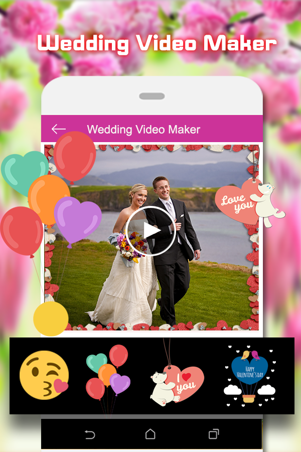 Wedding Video Maker (Package Name: css.weddingvideomaker) is developed by Code Star Studio and the latest version of Wedding Video Maker 3.0 was updated on January 11, 2018. Wedding Video Maker is in the category of Video Players & Editors. You can check all apps from the developer of Wedding Video Maker. Currently this app is for free. This app can be downloaded on Android 4.0.3+ on APKFab or Google Play. All APK/XAPK files on APKFab.com are original and 100% safe with fast download.