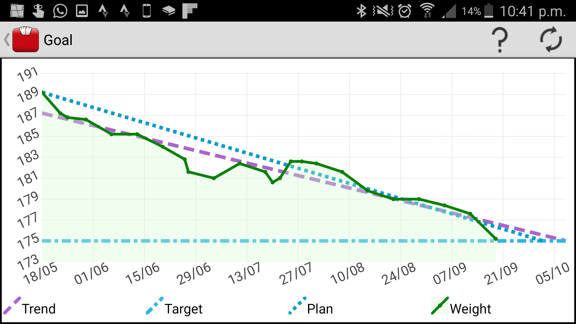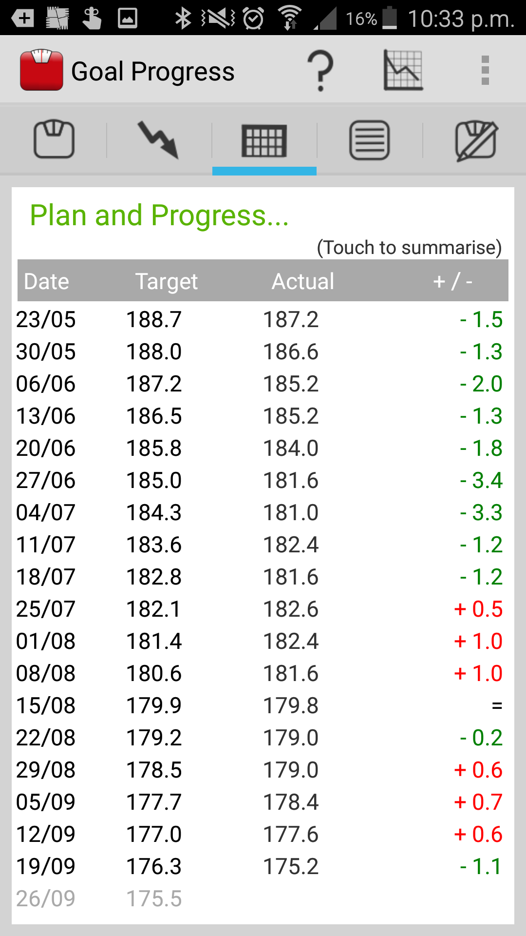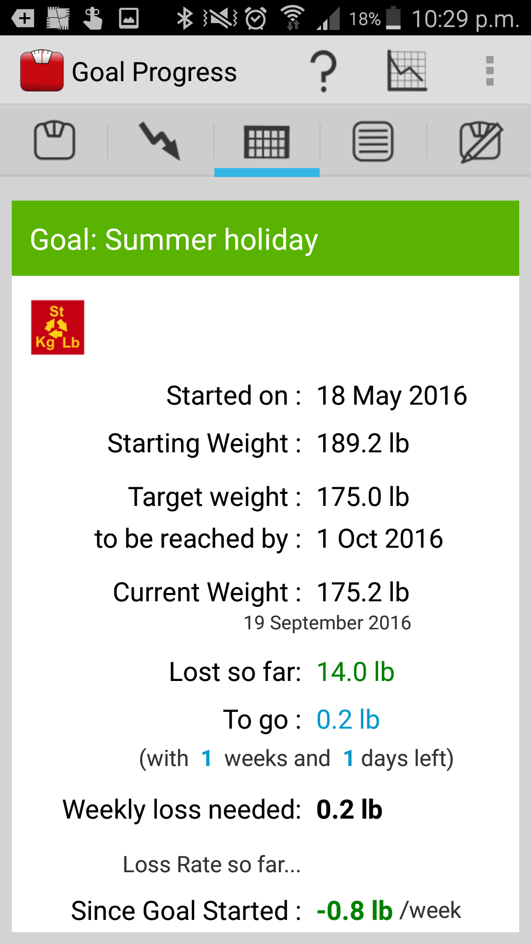* Setup a Goal to achieve a particular weight by a certain date. Weekly target weights are automatically calculated for you to track how you are progressing