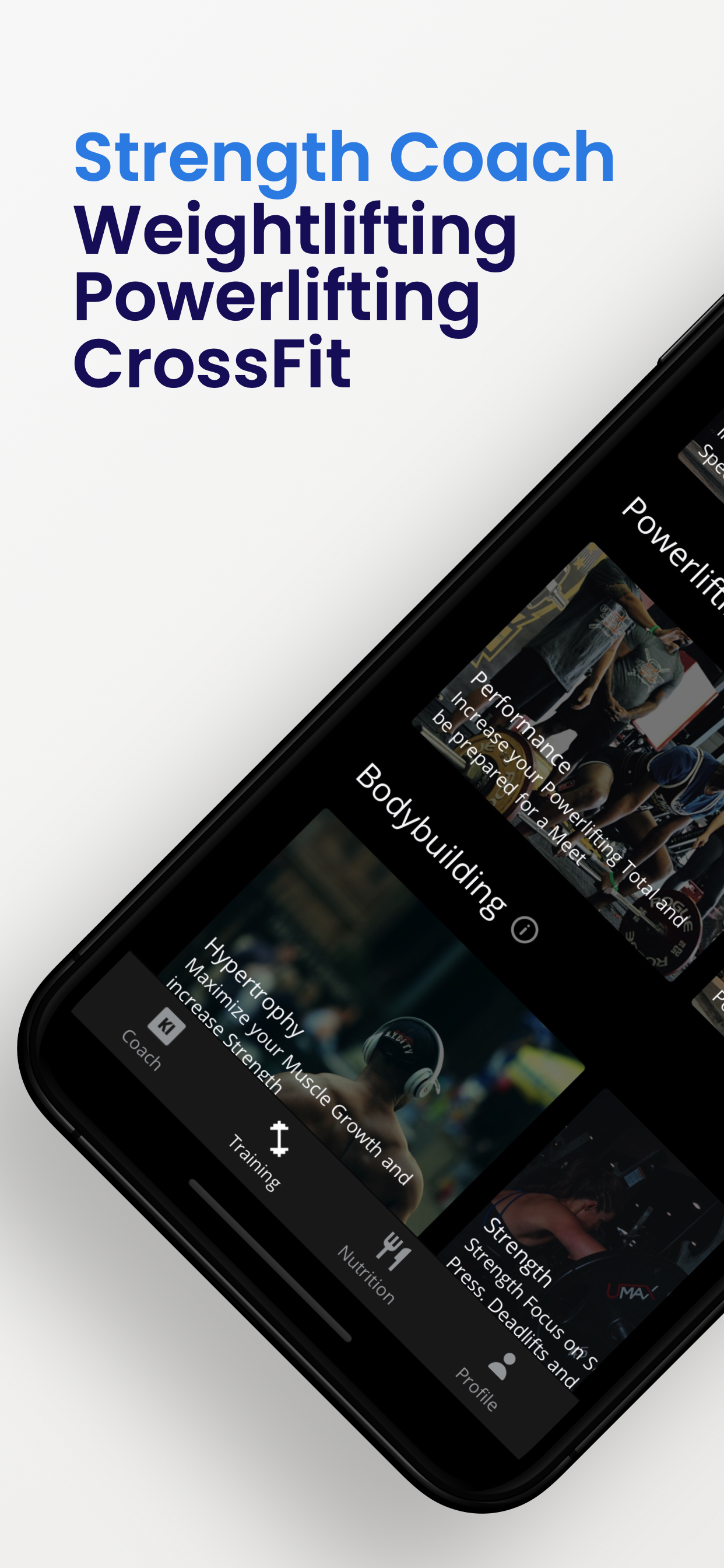 ● Powerlifting: Individual workout programs are also available for Powerlifting. Using our AI coach you can put the focus on competition preparation or off-season.
