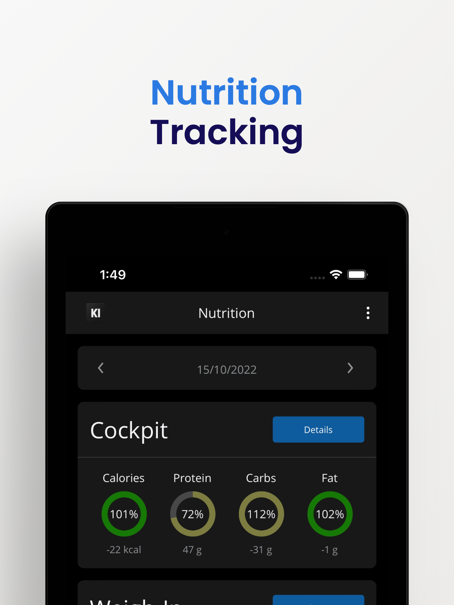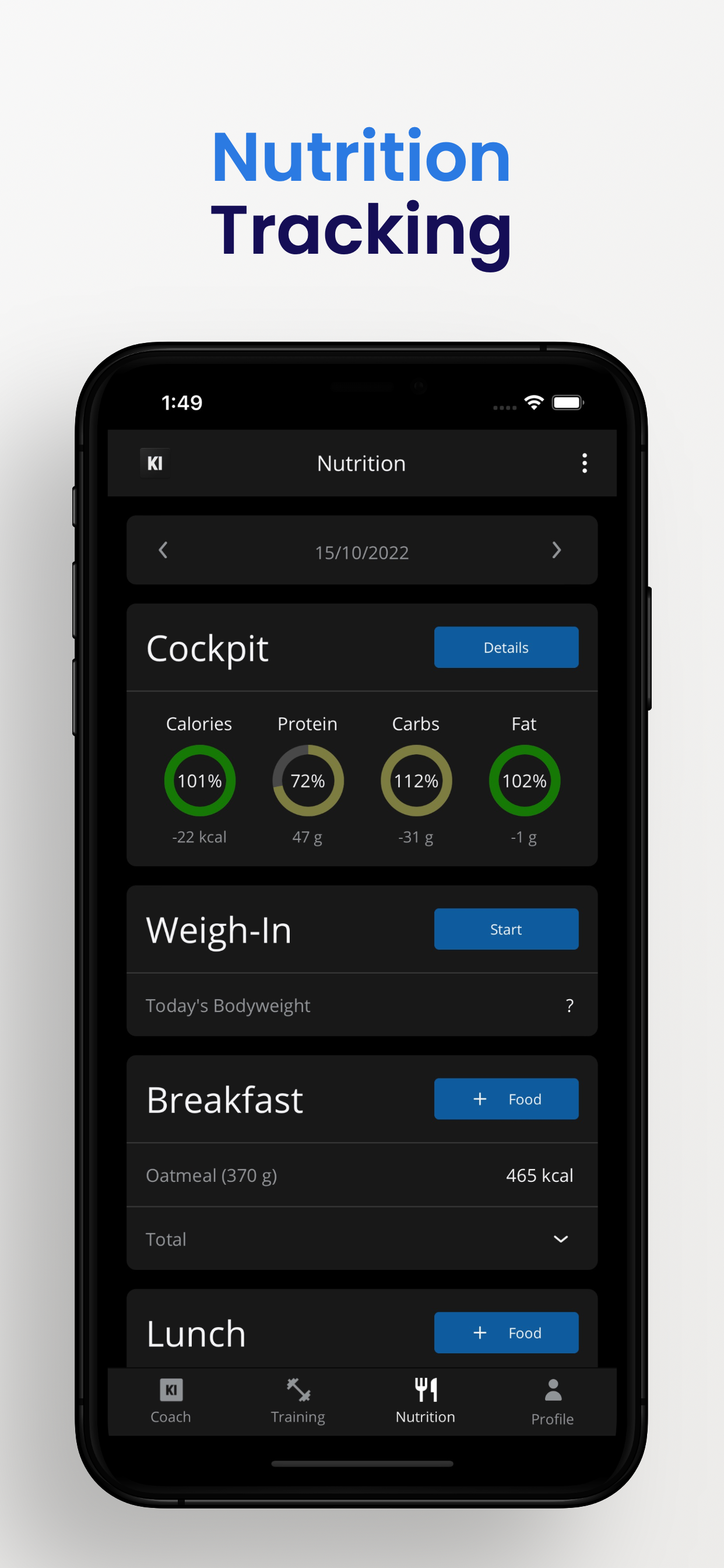 - use KI Coach’s nutrition tracker to calculate and hit your daily macros