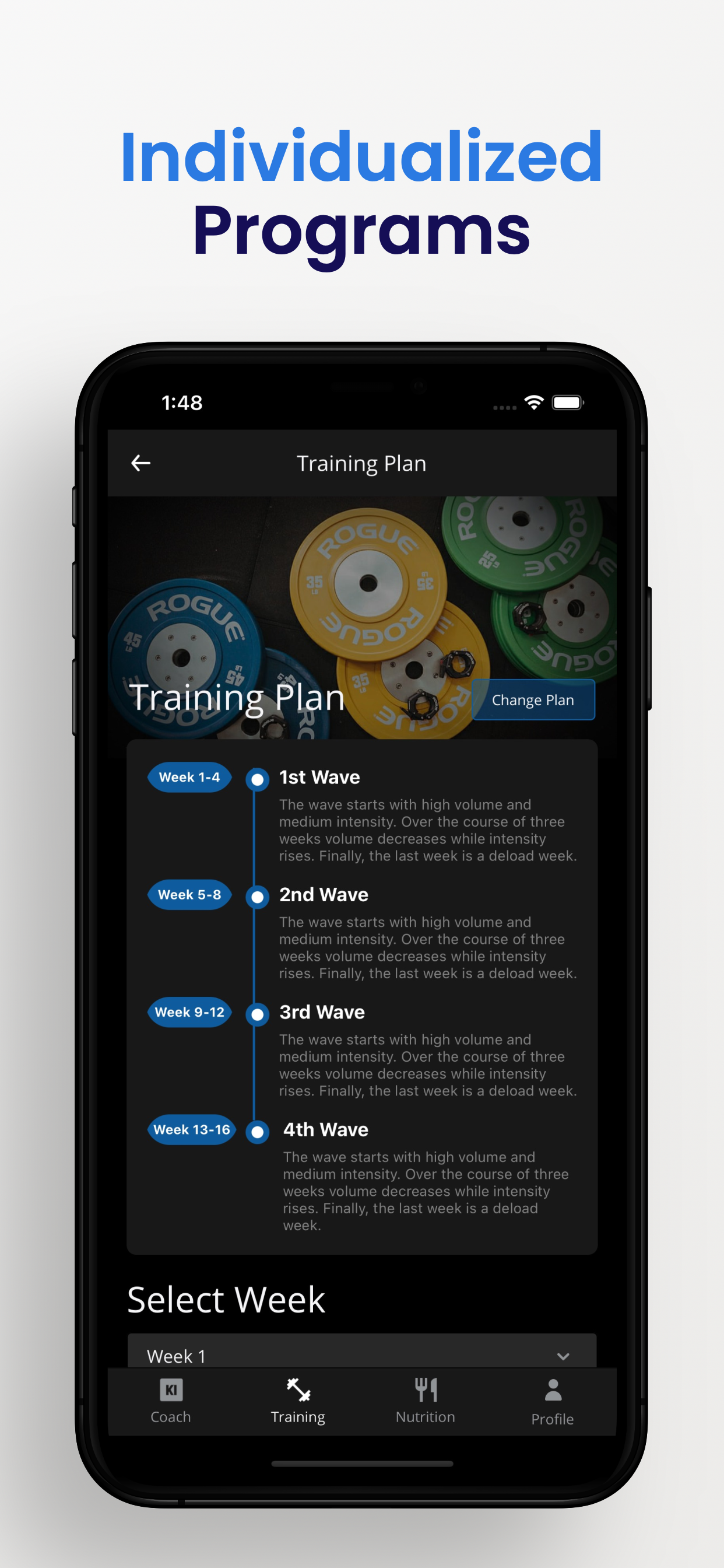 KI COACH FEATURES:- custom CrossFit, Weightlifting, Bodybuilding, and Powerlifting workout programs and nutrition plans