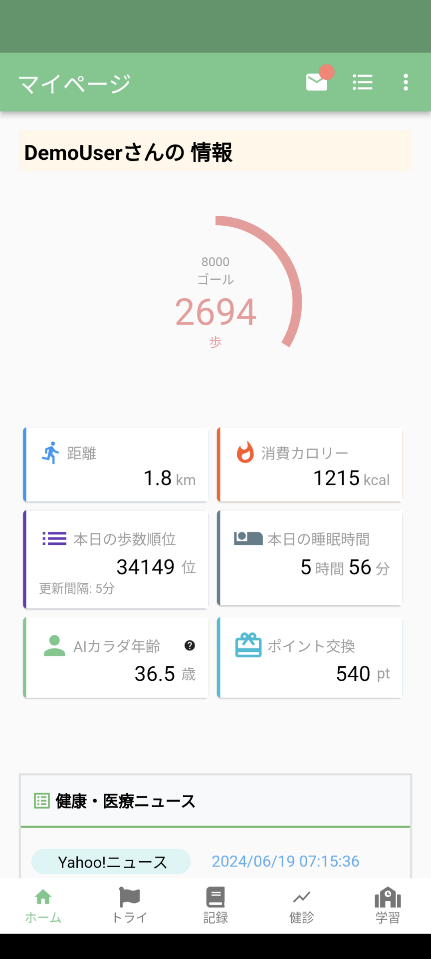 "WellGo" maximizes your health assets for a century-long life. The WellGo app aggregates information on health, sleep, and fitness to help improve exercise habits, sleep quality, and daily eating habits to prevent disease and facilitate their wellness Step Management: Integrates with Health Connect, as well as smartwatches. Daily steps are ranked in real-time, and recording daily activities stimulates health awareness. Calorie Management: Manage your calorie consumption through wearable devices on WellGo, supporting a more active lifestyle by tracking the calories burned through fitness activities. Meal Management: Monitor trends in meals at breakfast, lunch, dinner, and snacks, including alcohol consumption. Easily record up to ten food items with a tap and check the nutritional balance of your meals at any time. Quickly identify deficient items, enhancing your dietary awareness. Body Measurement Management: Record body weight, body fat percentage, and body temperature daily. You can view the trends of these measurements through graphs. Sleep Management: Record and manage sleep duration using wearable devices such as smartwatches to maintain sleep quality. Those without wearable devices can also use smartphone sleep apps. Health Checkup Results Management: View the results of health checkups on the app. Monitoring the results and trends through graphs can help maintain health and improve conditions. Stress Check Management: You can check your stress check results at any time on the app and use this information for your mental care. Diseases and Conditions Management: You can effectively manage diseases and health conditions by reporting follow-up actions after health checkups and recording your health status. Disease Prevention And Public Health: Improve the items evaluated in the app to help prevent diseases and enhance public health. Mental and Behavioural Health: Use the app to conduct stress checks, make post-check requests, and seek health consultations, supporting mental and behavioral health. Overall Health Ranking: Score from various aspects like health checkup results, questionnaire outcomes, steps, sleep, and diet. Health is categorized into 46 ranks, allowing you to tackle daily health with a gamified approach. Quest Feature: Choose quests to turn into health habits from various categories including exercise, diet, dental care, and sleep. Earn experience points based on achievement status, and watch your game's town grow. It's a fun way to habituate health. Team Feature: Create optional walking teams with friends. Set a team goal for walking distance and aim for goal achievement based on individual walking distances, a great feature for workplace communication. Booking Feature: Users can make appointments for immunizations, medical checkups, and consultations with company medical staff. Health Consultation Feature: Users can communicate with medical professionals via chat to receive their advice regarding their conditions including physical issues and mental health problems.