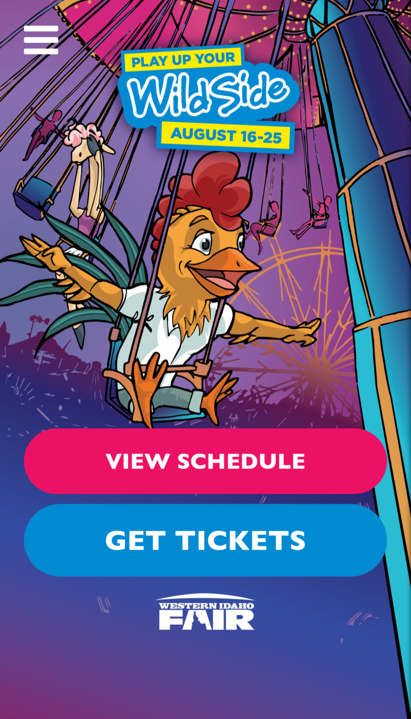 Play Fair. Use this app to tap into the tickets, maps, rides, food, concerts, entertainment, competitions, fun and games (phew) found only at the Western Idaho Fair. See what’s happening in real time or plan your epic trip in advance. With so much going on over the course of 10 action-packed summer days and nights, good times get greater (and easier to navigate) starting here. TICKETS Buy admission and carnival tickets—including package deals and a bargain book. MAP Find ATMs, bathrooms, food vendors, and other stops on the fairgrounds. SCHEDULE Concerts with bona-fide rock stars, county music legends, and hilarious comedy. Jugglers, hypnotists, and circus acts. Competitive standoffs both with and without farm animals. Then what’s next? There’s more than you even imagined happening all around the fairgrounds. Check it out. Mark your faves. Don’t miss a beat. FOOD What’s on the menu, and where’s your favorite food stand? Dish it right up. RIDES From thrill rides to family and kid rides, find the carnival descriptions to get your adrenaline fix on. FAIR INFO Guest and security services. Hours of admission. Medical and family waystations. Find the important info you need to stay happy and safe. Install this app—and get your Fair on.