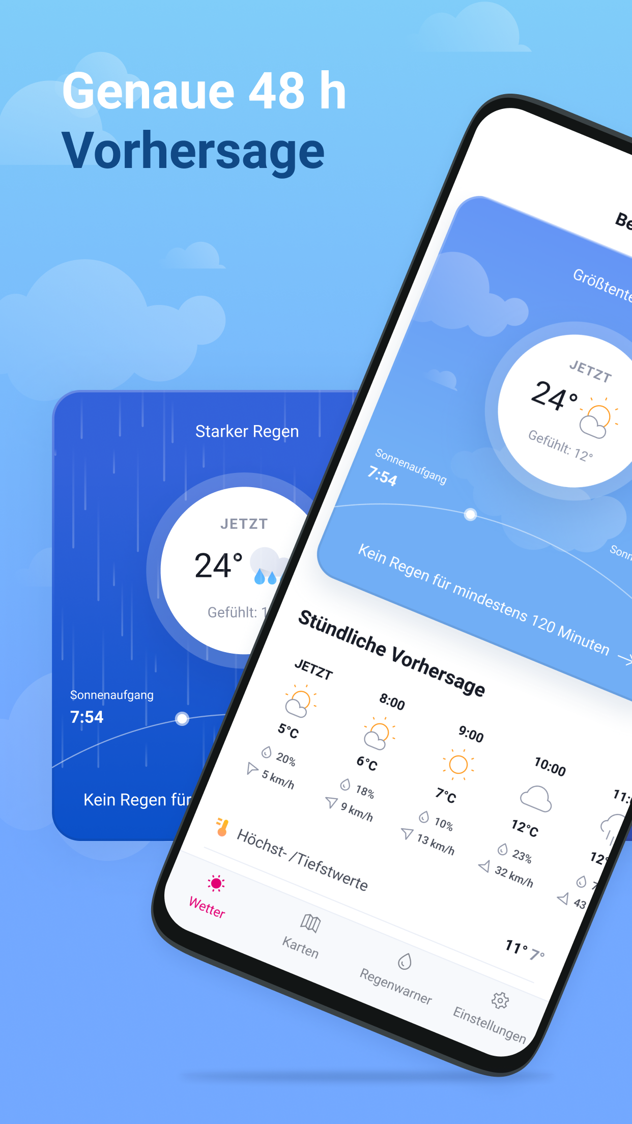 Get the new Wetter app on your Android device and receive the current weather conditions and forecasts as well as the severe weather warnings for over 1.5 million locations worldwide.