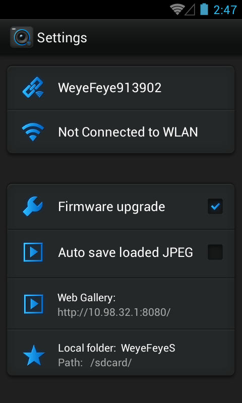 The XSories WeyeFeye Share is the most advanced universal Wi-Fi device enabling remote viewing of DSLR cameras with a smartphone or tablet that facilitates content sharing instantly. What the App enables you to do: - View the thumbnail and full size JPEG/RAW on DSLR. - Download the media files to Android devices, then share to Internet. - Manage the DSLR files wirelessly.