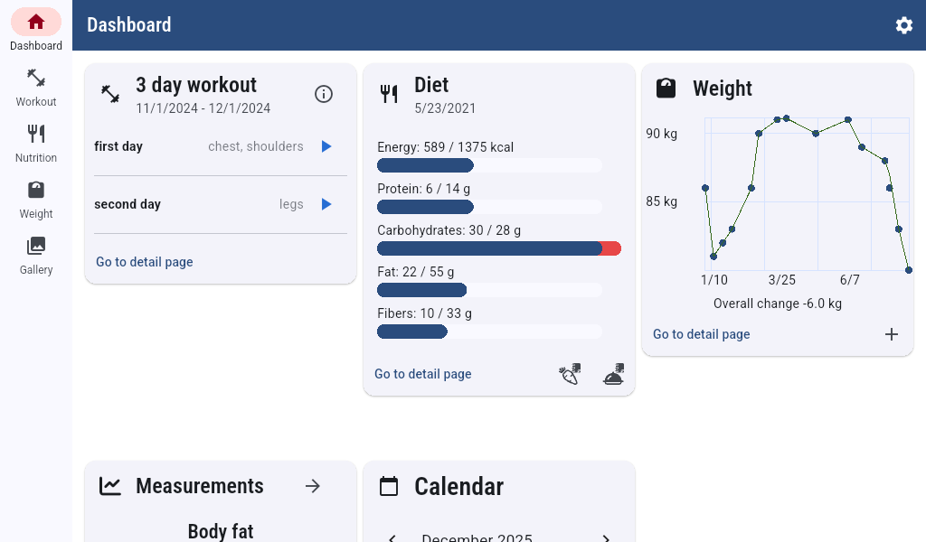 From fitness lovers to fitness lovers – get your health organized with WGER, your Workout Manager! Have you already found your #1 fitness app and do you love to create your own sports routines? No matter what type of sporty beast you are – we all have something in common: We love to keep track of our health data <3 So we don’t judge you for still managing your fitness journey with your handy little workout log book but welcome to 2025! We have developed a 100% free digital health and fitness tracker app for you, sized down to the most relevant features to make your life easier. Get started, keep training and celebrate your progress! wger is an Open Source project and all about: * Your Body * Your Workouts * Your Progress * Your Data Your Body: No need to google for the ingredients of your favourite treats – choose your daily meals from more than 78000 products and see the nutritional values. Add meals to the nutritional plan and keep an overview of your diet in the calendar. Your Workouts: You know what is best for your body. Create your own workouts out of a growing variety from 200 different exercises. Then, use the Gym Mode to guide you through the training while you log your weights with one tap. Your Progress: Never lose sight of your goals. Track your weight and keep your statistics. Your Data: wger is your personalized fitness diary – but you own your data. Use the REST API to access and do amazing things with it. Please note: This free app is not based on additional fundings and we don’t ask you to donate money. More than that it is a community project which is growing constantly. So be prepared for new features anytime! #OpenSource – what does that mean? Open Source means that the whole source code for this app and the server it talks to is free and available to anybody: * Do you want to run wger on your own server for you or your local gym? Go ahead! * Do you miss a feature and want to implement it? Start now! * Do you want to check that nothing is being sent anywhere? You can! Join our community and become a part of sport enthusiasts and IT geeks from all over the world. We keep working on adjusting and optimizing the app customized to our needs. We love your input so feel free to jump in anytime and contribute your wishes and ideas! -> find the source code on https://github.com/wger-project -> ask your questions or just say hello on our discord Server https://discord.gg/rPWFv6W