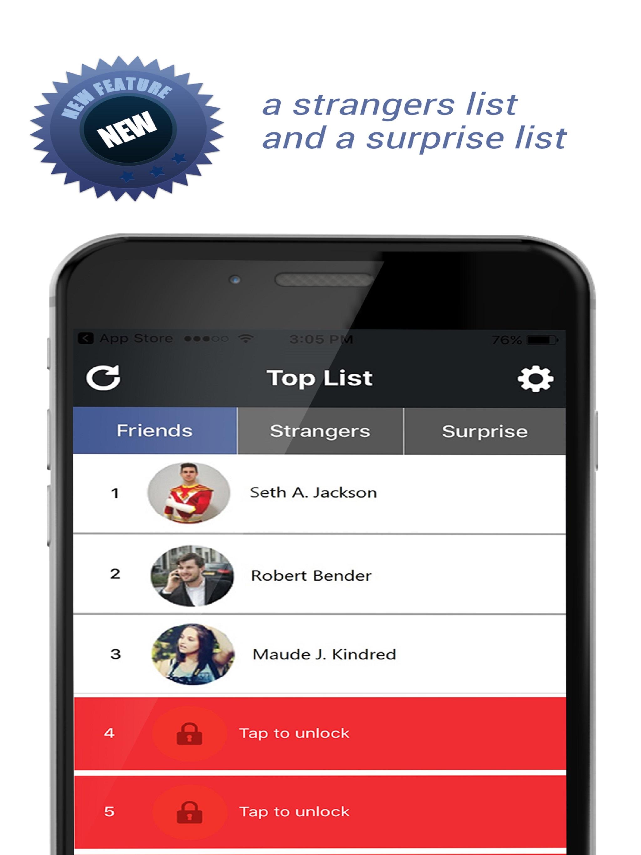 Hello Dear, welcome to who cares about my profile app, your profile privacy is 100% protected . The app will never collect and/or store any data of yours and will never post to Facebook unless you want it. Can you really see who viewed your profile ? yes you can :) Extra new features are added in this recent update that includes: Strangers List: This list shows people with top interactions with your profile outside your friend list . Surprise List: This list is given the highest priority in your algorithm and may not be available to everyone but for those whom the list does provide names, it shows people extensively interacting with your profile. PS: The app has a free & paid versions, the free version shows you a part of the list & keeps the rest as hidden, where the paid versions unlock the whole list, please use the free version at the first and try the app yourselves, if you are satisfied with the results, you have the option to switch to the paid versions. For the free versions you have 3 bonuses to unlock the first top places, kindly note that these are only options that free users can choose to use or not , paid users will have the full lists they choose to unlock completely unlocked . Still HERE go and get it enjoy :)