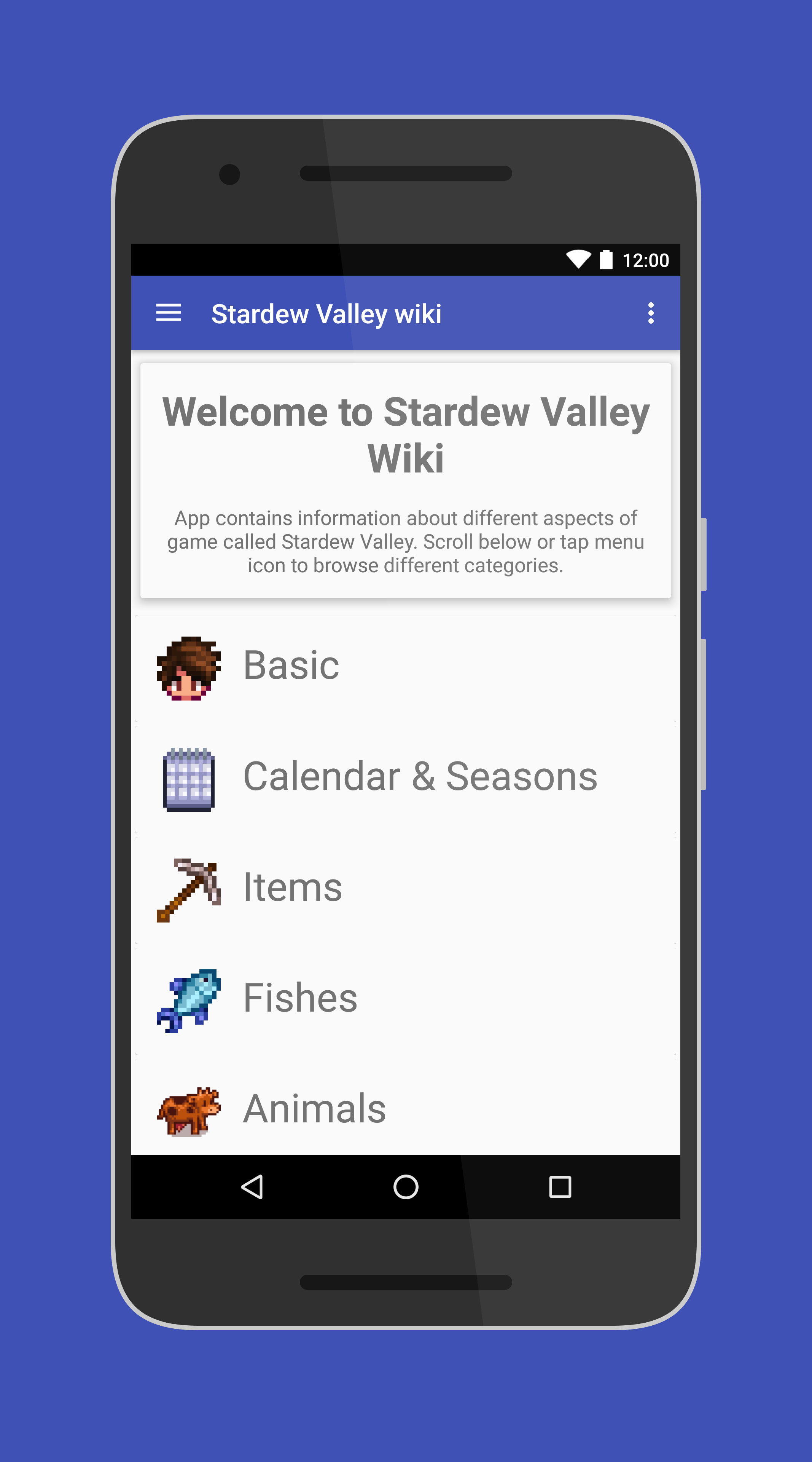 Browse the Stardew Valley Wiki on your phone or tablet using the app! This is not a GAME this is a wiki-like app for Stardew Valley. This app is an awesome mini guide with the necessary information about the items. There will be more updates coming to this app!