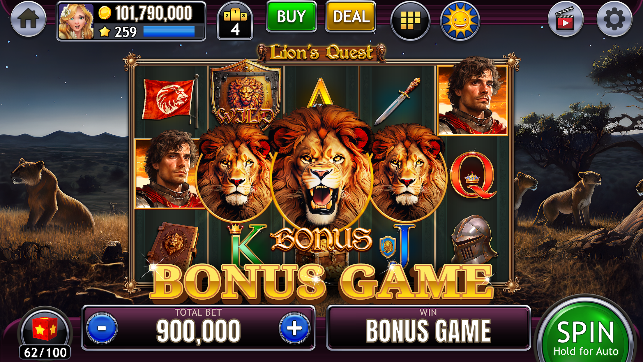 The free casino slots games on offer in Slots of Luck will excite you with free spins, fun bonus games and fun collection mini games, where you collect prizes and match them onto quest cards for extra rewards!