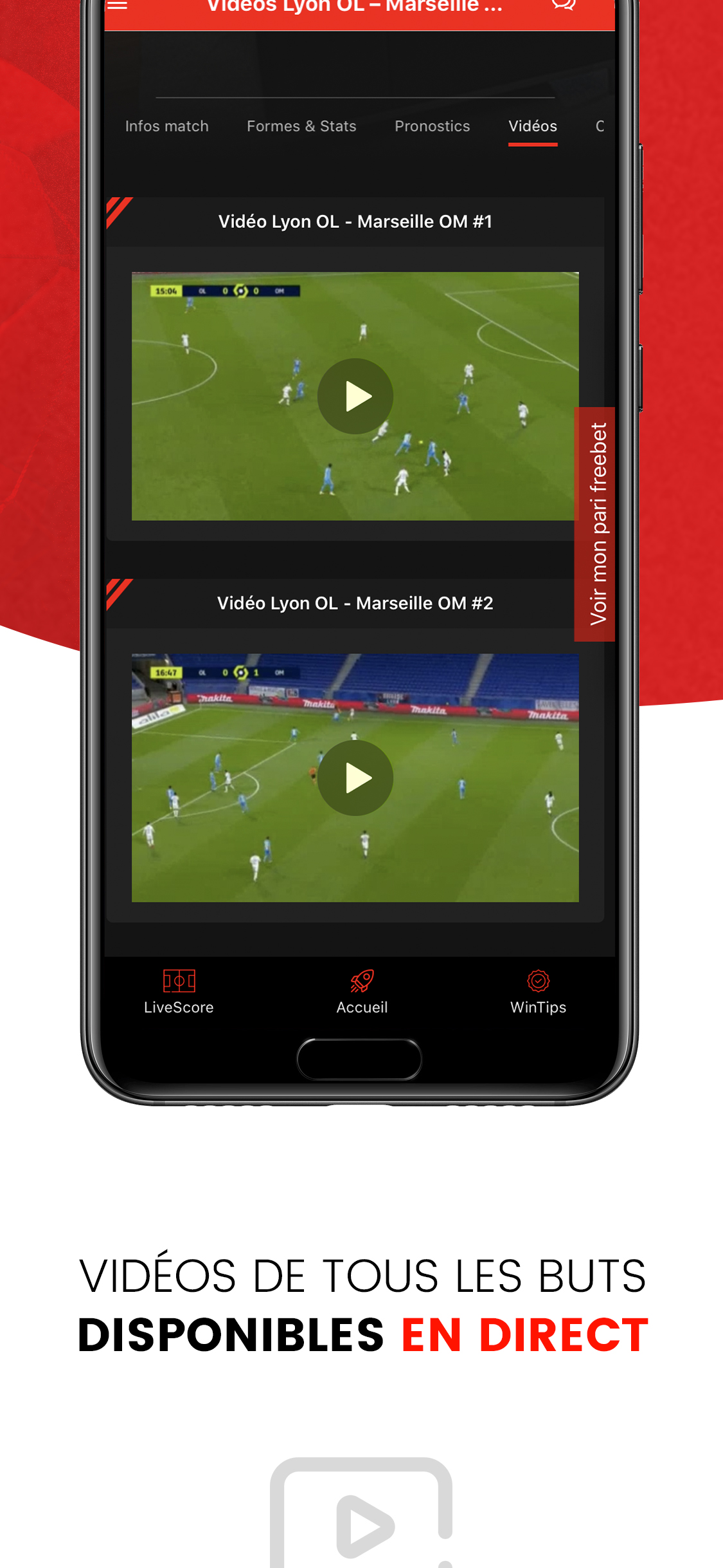 94% success! Find the best soccer predictions and join the best soccer prediction app. Complete and reliable, take advantage of our sports betting advice, test our strategies with our freebets before playing for real on Unibet, Winamax, Parions web / Parions Sport or even Bwin or Zebet. All football predictions are accessible to VIP members, you have privileged access and your freebet betting data is recorded to allow our advice to evolve according to your playing methods. We predict football predictions on all championships and for all football matches. You will find in the application the predictions for the biggest European football championships such as predictions for the French Ligue 1, the English Premier League, Serie A in Italy, the Bundesliga in Germany but also the football championship in Switzerland, from Portugal, the Netherlands from Scotland etc ... With Winflix the football predictions extend to the Asian, American (MLS) and South American (Mexico, Brazil etc ...) championships. When it comes to Football and sports betting, odds make the difference. Winflix finds the ideal odds on the Football match to optimize your online betting and your sports betting. Thanks to your Winflix VIP account, you benefit from a Live and all the statistics on Football matches to follow the match of your choice live. During the match the important actions are instantly available in the video section and allow you to review the goals, actions or cards of the football match.