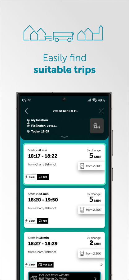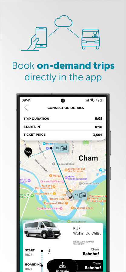 Wohin·Du·Willst - your personal mobility planner The Wohin·Du·Willst-App is your mobile travel planner. The app gives you an overview of bus and train timetables and shows you when they depart and arrive in real time. This allows you to find the right local transport connection and always arrive at your stop on time. You can also buy the Deutschland-Ticket in the app. With the Deutschland-Ticket you can travel all over Germany on regional 2nd class services. Find out more here: www.wohin-du-willst.de Basic features: Purchase of the Deutschland-Ticket You can buy your Deutschland-Ticket directly in the app - simply and contactlessly. So you always have your ticket for whole Germany in your pocket. Search for connections In all regions of Germany, the Wohin·Du·Willst-App shows you the connections that will take you to your destination. When searching, you can select the means of transport you prefer to use. Real-time information With the Wohin·Du·Willst-App, you always know how the traffic is running. The app shows you throughout Germany whether your connection will start on time or whether there are any delays. Reminder function Never miss a train or bus again with the Wohin·Du·Willst-App. The app reminds you of saved journeys and sends you off on time with the “You have to go now” function. Offline mode Thanks to offline mode, you can access all your saved journeys even without an internet connection! You only need the network for new journeys and the latest delay information. Some districts offer the following additional features: eTicketing Users can buy the Deutschland-Ticket in the app anyway. In some districts, users can also purchase any other ticket for buses and trains in their region in the app. New mobility services In some areas, shared cabs, on-demand buses, carpooling platforms such as BlaBlaCar or autonomous transportation are already available. These are integrated into the app and can be booked there. Push notifications If local authorities add local push notifications to the app, users receive notifications about disruptions and other events in the region on their cell phone.