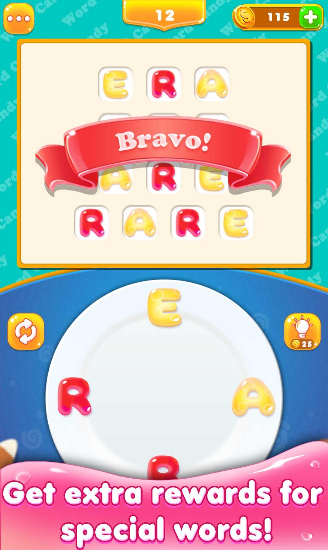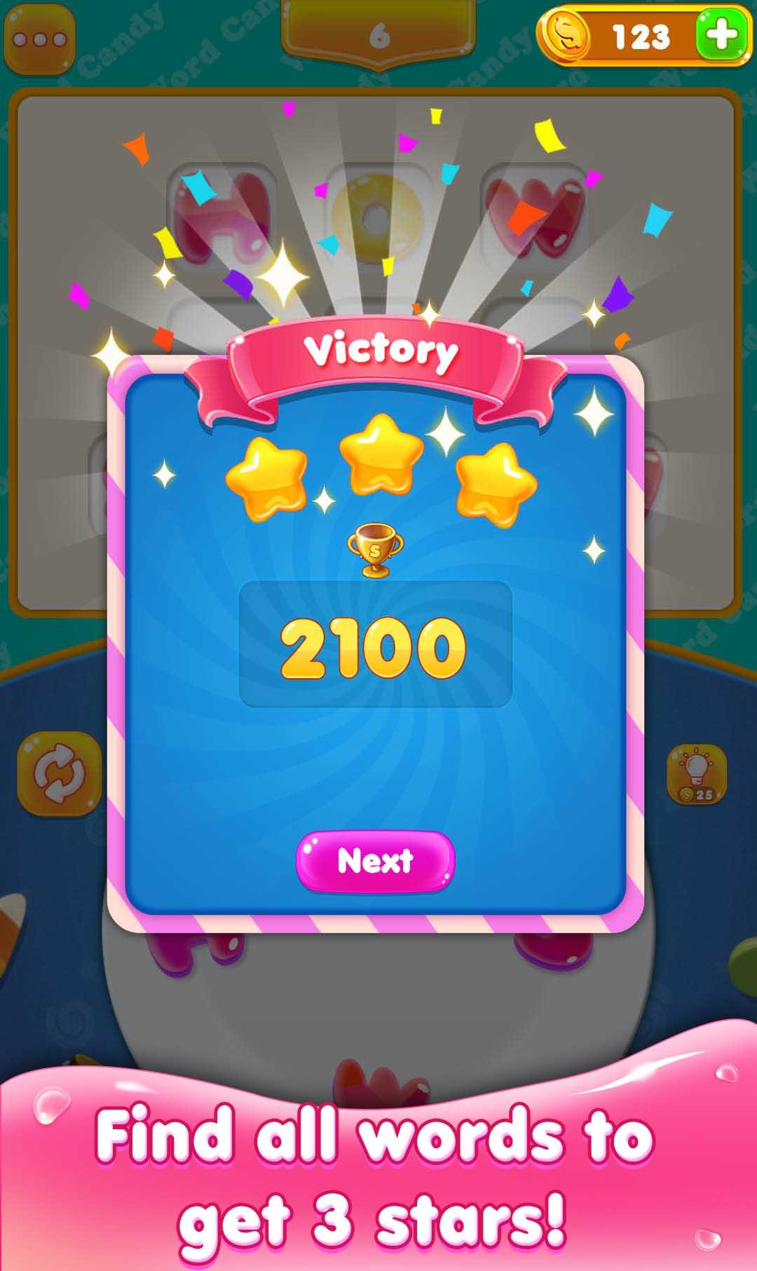 Sweet candy style interface, a perfect word puzzle game for pastime.