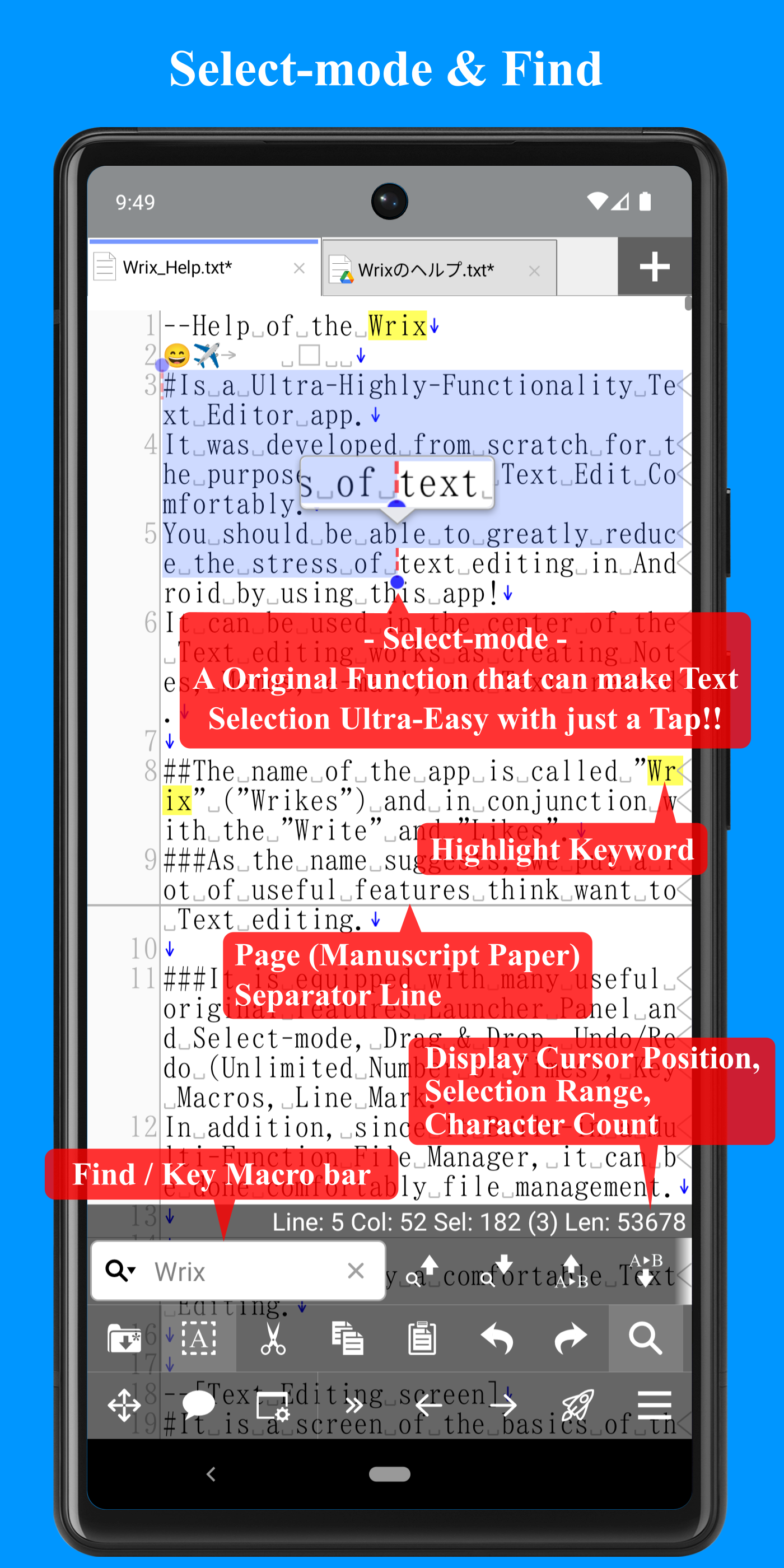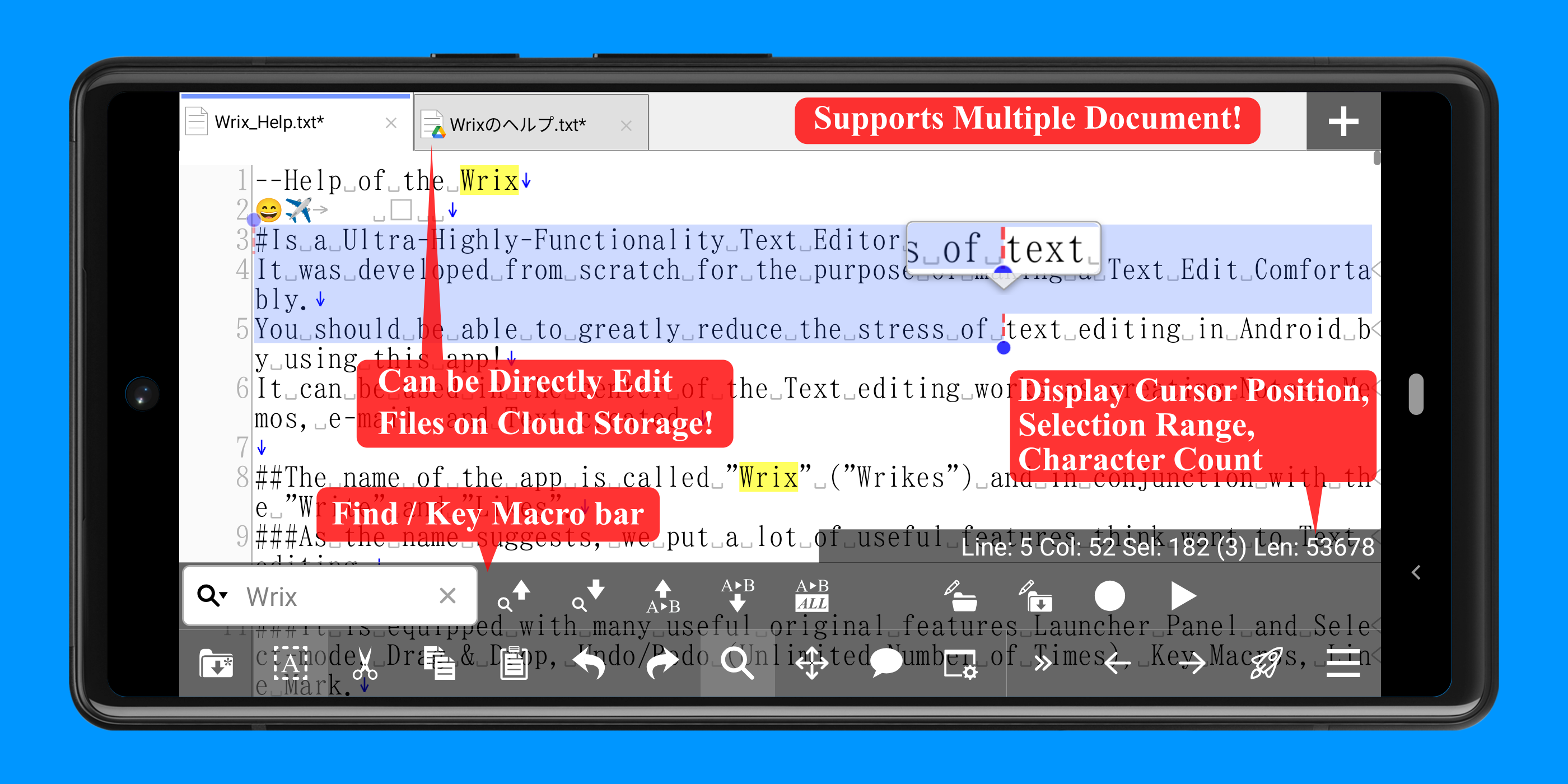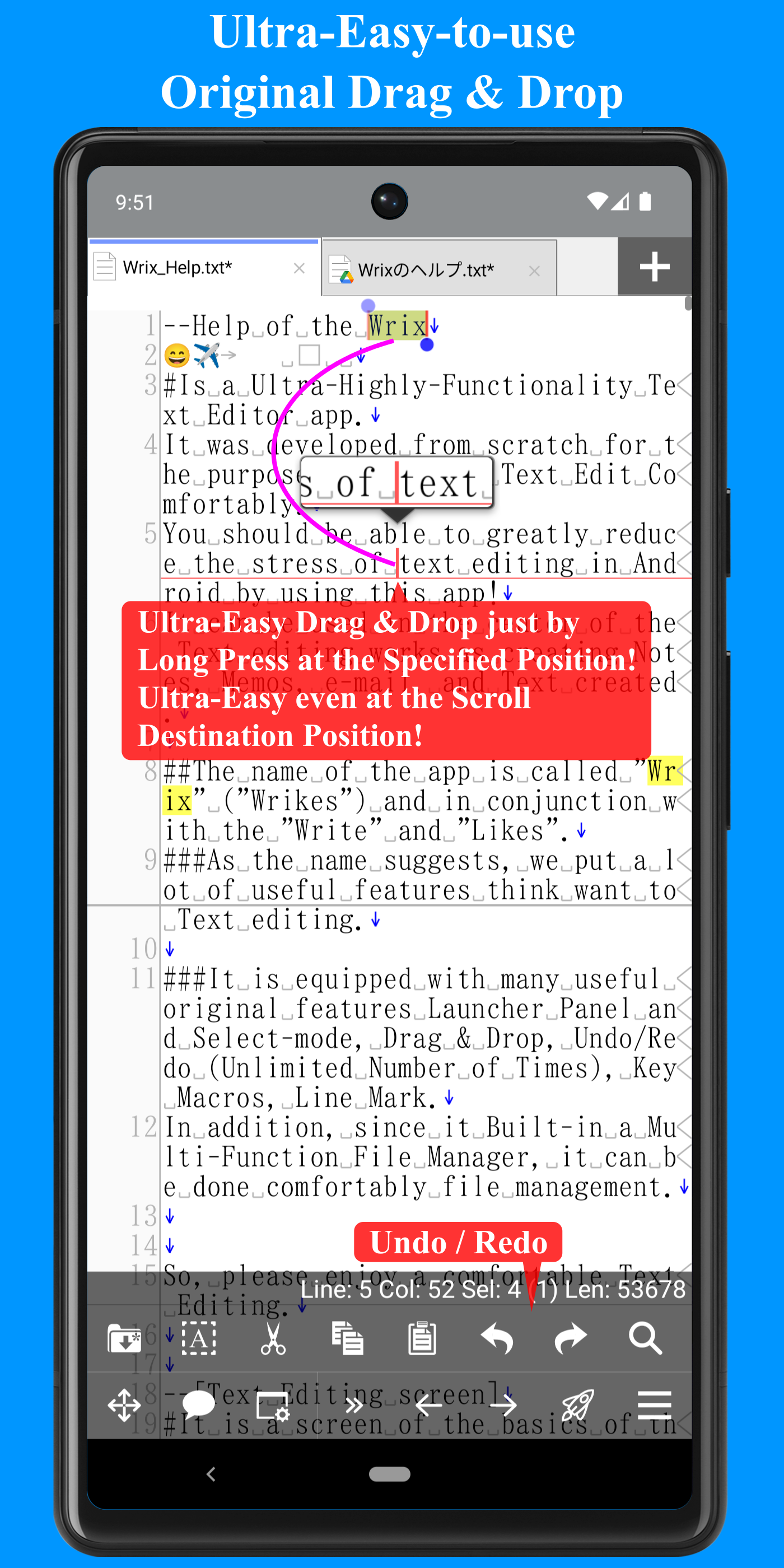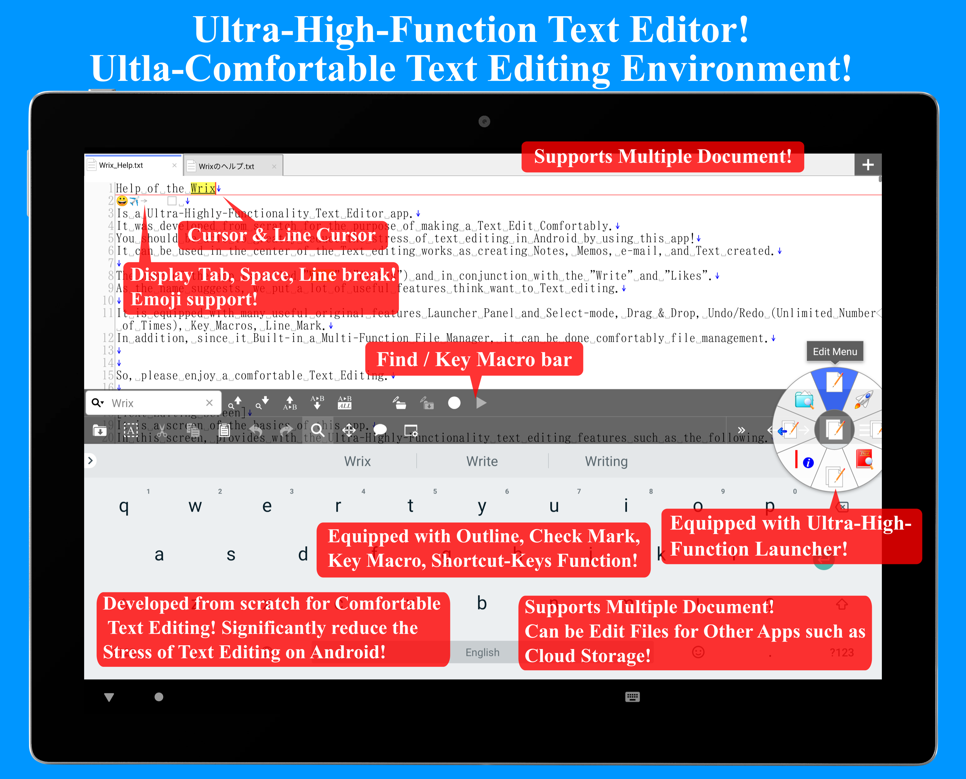 This is Ultra-High-Functional Text Editor app! You can Ultra-Comfortable Text Editing!