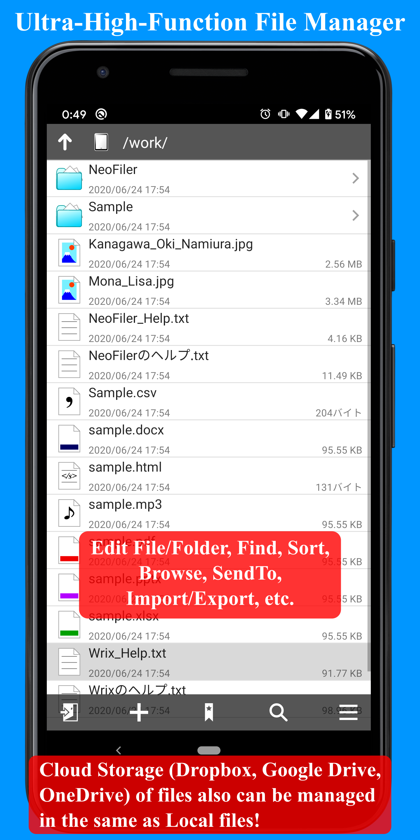 Built-in Ultra-High-Functional File Manager makes File Management even more comfortable!