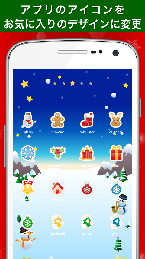 X'mas Icon (Package Name: com.nos_network.iconchange_xmas) is developed by NOS Inc. and the latest version of X'mas Icon 1.2 was updated on August 28, 2014. X'mas Icon is in the category of Personalization. You can check all apps from the developer of X'mas Icon and find 115 alternative apps to X'mas Icon on Android. Currently this app is for free. This app can be downloaded on Android 2.1+ on APKFab or Google Play. All APK/XAPK files on APKFab.com are original and 100% safe with fast download.