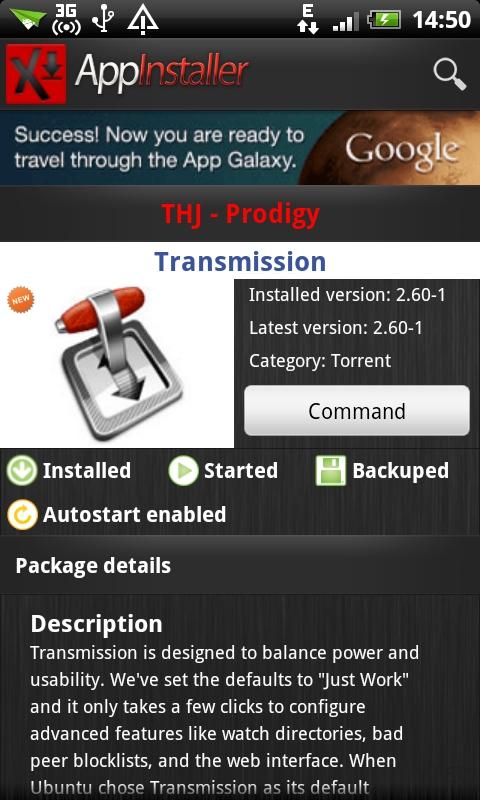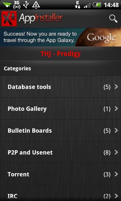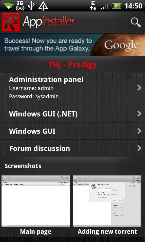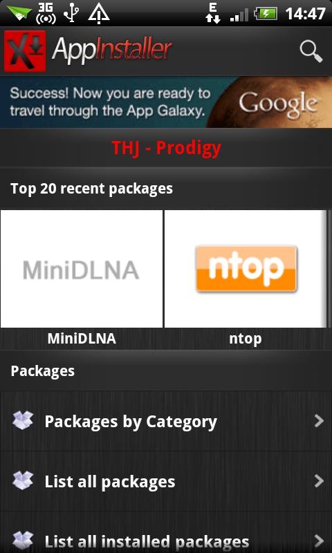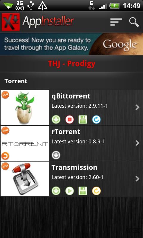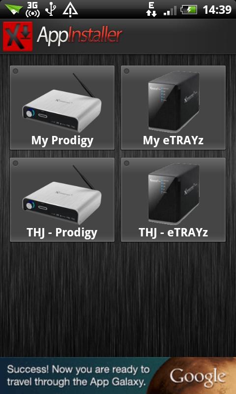 xAppInstaller is an Android GUI version of the well known APP Installer PHP version written by TheHijacker (an active member of Xtreamer forum). With xAppInstaller you will easily install additional application and extend the basic usage of your Xtreamer products (eTRAYz, Prodigy and/or Sidewinder3). Here some of most famous packages that will be possible to install on your Xtreamer device: - Transmission, a cross-platform BitTorrent client. - pyLoad, a fast, lightweight and full featured download manager. - SABnzbd, an Open Source Binary Newsreader written in Python. - Sick Beard, a PVR application that searches for and manages your TV shows. - CouchPotato, an automatic NZB and torrent downloader. - MiniDLNA, a server software with the aim of being fully compliant with DLNA/UPnP-AV clients. - MediaTomb, an open source (GPL) UPnP MediaServer with a nice web user interface, it allows you to stream your digital media through your home network and listen to/watch it on a variety of UPnP compatible devices. - .... and many many other interesting and useful packages, currently there are more than 130 packages and the list grow every day. The xAppInstaller will permit you to install/remove/start/stop/backup/restore any packages on your Prodigy, eTRAYz and Sidewinder. xAppInstaller features: - Multilanguage: English, Italian, Slovenian, Russian, Ukranian, Dutch and Spanish - Configure Device available on your network - List all available packages for your device (feed managed by TheHijacker) - List the latest packages added - List packages by categories - List packages by their status (installed/running/stopped/autostarted/using cron/...) - Search a package - Sort the list of packages by name, date added and category - Show package details, comments, links and screenshots - Install/Uninstall application on your devices - Start/Stop application on your devices - Set appliaction properties as autostart and backup/restore - Shutdown/Restart your device Next features: - Autoinstall API App Installer on your device - Modify device MySQL password - Show device details and status (memory, hdd usage, cpu workload, ...) - Tablet optimization - Prodigy TV render optimization Requirements: - Xtreamer device: Prodigy, Sidewinder3, eTRAYz - APP Installer API: xAppInstaller is based on APP Installer API that must be installed on xtreamer product which you wish to manage. Here you can find istructions to install API Installer on your xtreamer device: http://appinstaller.kralj.info/