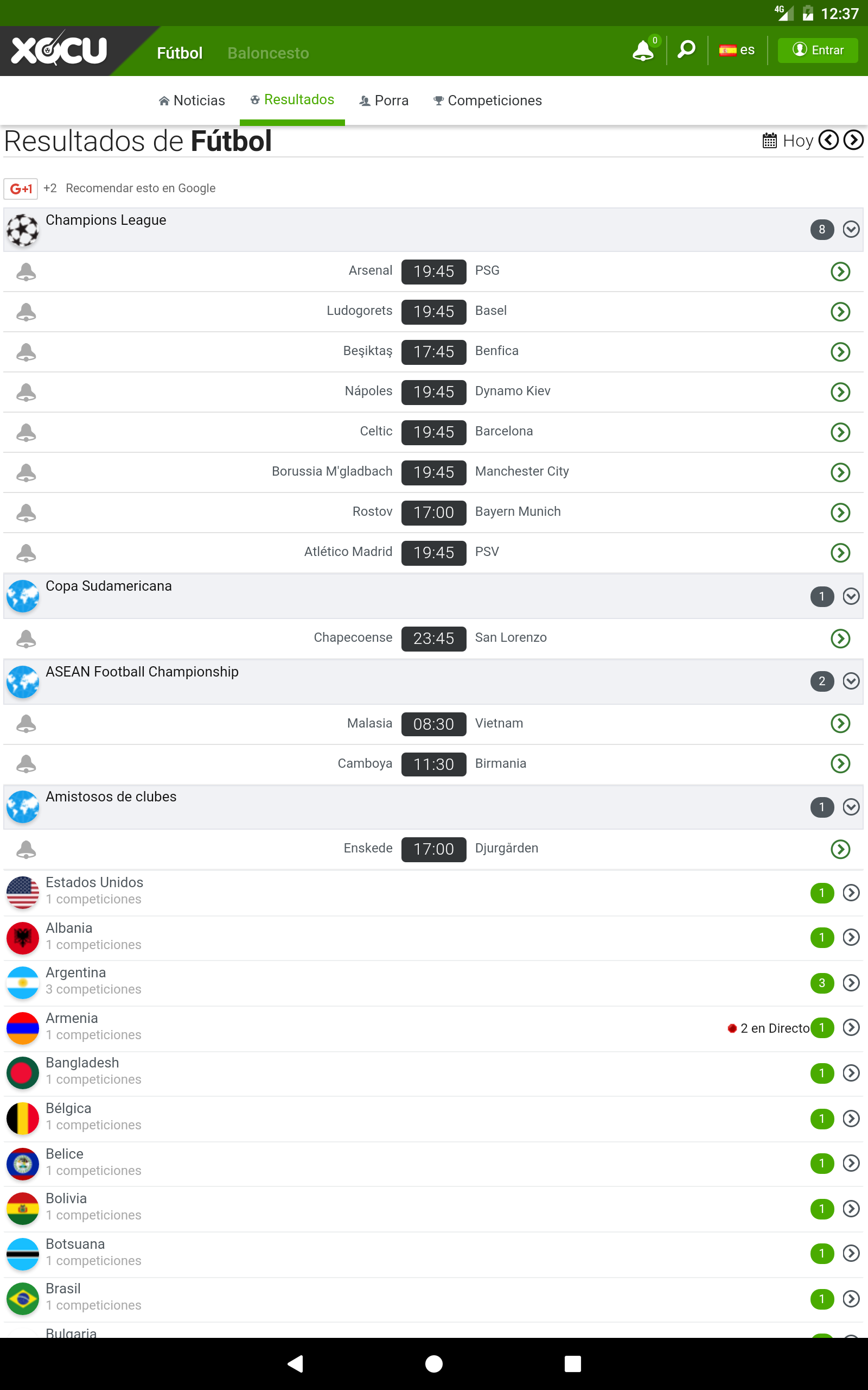Everything you want to know about soccer is in Xocu. Never again miss a soccer match because you can follow live and know the results of more than 400 competitions of all the world and you can receive real-time notification. And if you think you know the outcome of the next match, you can prove predicting results in the World League Draw competition! Also, you can challenge your friends and create your own draw. In addition you will be able to be informed of all the news and select the information you want to see with the favorite option. MAIN FEATURES: Live matches Do not miss any match! Follow minute by minute and stay informed of the progress of the game with live commentary. Notifications and Alerts in real time Goals, red cards, yellow cards, start and end game and favorites. Follow your favorite teams You're the one who decides what information you want to receive, customize the App with the information you want to receive and follow only the parties, equipment and comepticiones that interest you. Diary matches of each day Match schedule, stadium and option to add to favorites that generate alert for not to miss the match, and notice of start and end. The best odds on every game If you like sports betting, you'll find the best odds for each match of the main sportsbook Videos of goals and match summaries All information of the previous Lineups and Statistics of previous matches, games won, goals conceded, cards, game statistics, videos of goals and match summaries. Topicality and sports news The news that really interest you in the news section, summaries of each day, soccer curiosities and all told from an objective point of view and without sensationalism. Also, you can share with your friends the news that you like through your social networks (Facebook, Twitter and Whatsapp). Participates in the Draw Prove you're the best forecasting results in World League Porra, you will win a shirt of your favorite team if you are getting the most points in a month. And if you are in the top ten of forecasters you will enter in the draw for a shirt. In addition to the end of the season you'll get another prize. Make your own draw Create draw leagues with your friends, what competitions you like to follow? Do you think you can beat your friends forecasting results? Well, make your Draw League! Sync your devices Sync your devices, with user registration can receive all the information on your phone and tablet. Expands sports coverage Football, Basketball, Tennis LEAGUES AND NATIONAL COMPETITIONS - LaLiga - Copa del Rey - LaLiga2 - Spain Supercopa - Second Division B - Third division OUTSTANDING COMPETITIONS - Champions League - Europa League - England: Premier League - Germany: Bundesliga - France: Ligue 1 - Italy: Serie A - Argentina: Primera Division - Mexico: Liga MX - Portugal: Primeira Liga - United States: Major League Soccer SELECTIONS - Eurocup - America Cup - Asia Cup - Copa Libertadores - African Nations Cup - Copa Conferedaciones - Copa Colombia - Chile Cup - Copa do Nordeste - Copa do Brasil