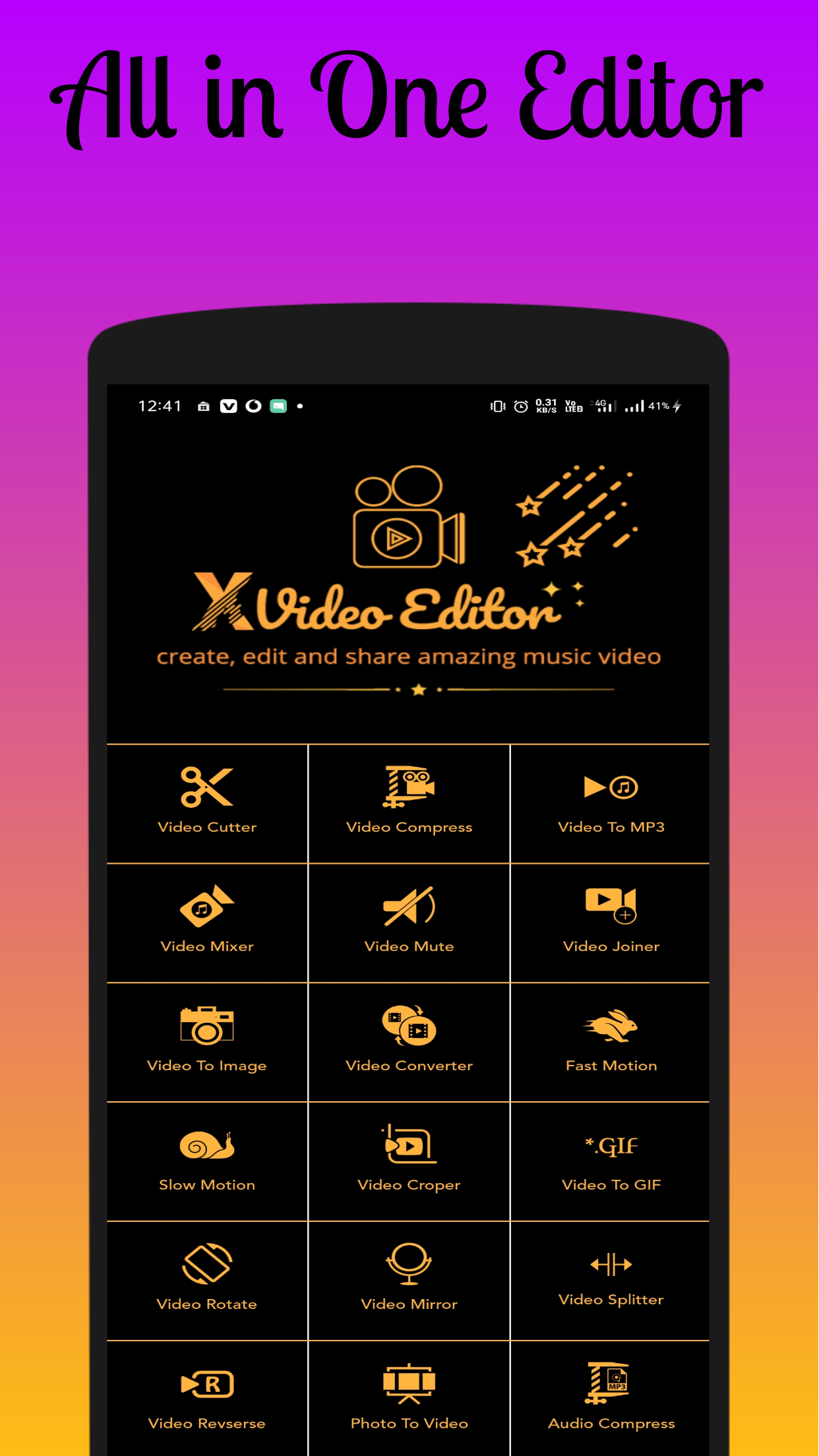 Unleash the true creative potential with the power of Xvideo Editor. It is a Lite Video Editor bundled with a lot of exciting and powerful features. XVideo Editor is a free and powerful application. It has everything which you need to create an awesome Video. XVideo Editor will help you to create a simple and amazing video. It is an easy-to-use video editing app with advanced features. Edit music videos in your way, make your movies and share on social media. Create Unique and Engaging video with the power of XVideo Editor. Now share your videos on YouTube, Face book, Twitter, Instagram, and more. In Best Practice, you can add themes, filters, effects, transitions, emoji, voiceover narration, music, and much more. It has Professional and Advanced Video Editing Features for your daily needs. It already preloaded with unique and Handy Features for your convenience so that you need not worry about your video editing experience. Best Videos can be created within minutes. Main Extra Key Feature of XVideo Editor : - Clean and Easy UI for creating Best video within a minute. - Use your favorite songs to make a video. - Add music for your videos. - Live Video editing experience previewed in the WYSIWYG way! - XVideo Editor helps you to create an interesting video. - Edit videos with Premium creative frames. - Export your created video directly into your Gallery. - Share your video with social media XVideo Editor: Movie Editor App is a Professional Video Editing Tool for Your Daily Needs. Have fun and create cool videos that are at another level. Also, you can Create Outstanding WhatsApp Status Posts. Video Editor App Features: - XVideo Cutter: XVideo Cutter Tool will let you Cuts Video With Simple Steps that can be saved in your gallery. Just drag With Selected Time Intervals and the video is ready as You Like With Same Audio and Video Quality. XVideo Compressor: It Allows You to Compress any Video that you can share with others. Xvideo Compresses and decreases size so that it will consume less memory and preserve extra space for other items. XVideo Merger: This tool is the most useful and advanced. It will let you select multiple videos and merge them accordingly to make a full video. XVideo Mute:-Sometimes there was annoying sound recorded automatically in the video that needs to be muted so here is the one more advanced tools for your use which let you mute the audio of your file. XVideo Mirror Effect:-Haha... This one is funnier as the name is as it will mirror the video and make an interesting and amazing video that will make you laugh. This one is my favorite....Try once. XVideo To MP3 Converter:-Want to convert your favorite Video song in music play so when you go for a walk then you can listen from your Smartphone then this is for you. It will allow you to convert any video format to music file format or mp3 with ease. XVideo Player:-Play your favorite video with the Xvideo Player XVideo To Photo Converter:-This is a simple and powerful tool. Sometimes some scenery or wallpaper comes into the video and we want it. This tool will help you to convert Video to photo so that you can get it. XVideo Rotate:-Video Rotate Tools Rotate a Video in All Degree Such as 90,180,270 and 360. XVideo Crop:-Video Crop Tools is Very Simple and Easy to use for Any Kind of Video format eg MP4,3GP and WMV, etc. XVideo WaterMark:-XVideo Watermark Tools Adds Watermark to Your Favorites Video so you can make your brand. Fast Motion Video:-Fast Motion Video Tools helps you to Select Any Video to increase Speed Like 2x,3x, and 4x up to 10x. XAudio Compressor: Want to Compress any audio song in a Different K/Bit Such as 64 K/bit,128 K/bit,256 K/bit then use it. Slow Motion Video Maker:-Create slow-motion video of your favorite video also there is a trim option available that will help you to trim as well as make the whole video slow. Choose any video and select speed like 1/2, 1/3, 1/4, up to 1/10. And many more, please.....