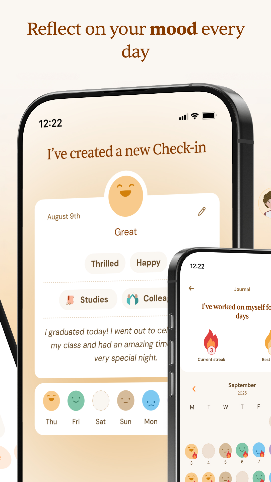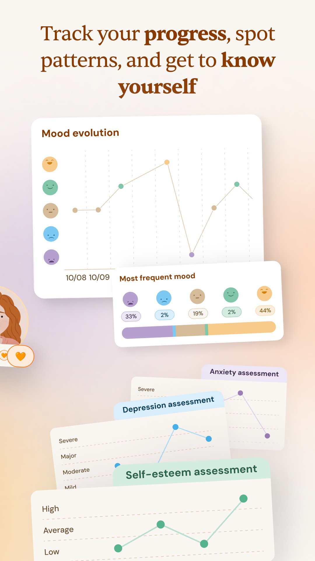 - Mood history: Keep a secure record of your emotions and thoughts to identify emotional patterns and strengthen your mental well-being.