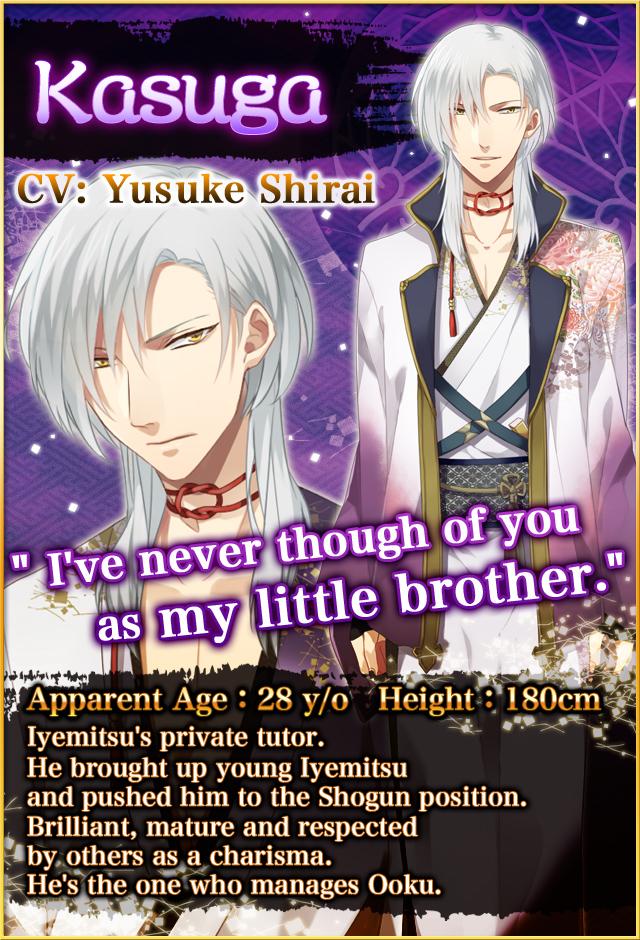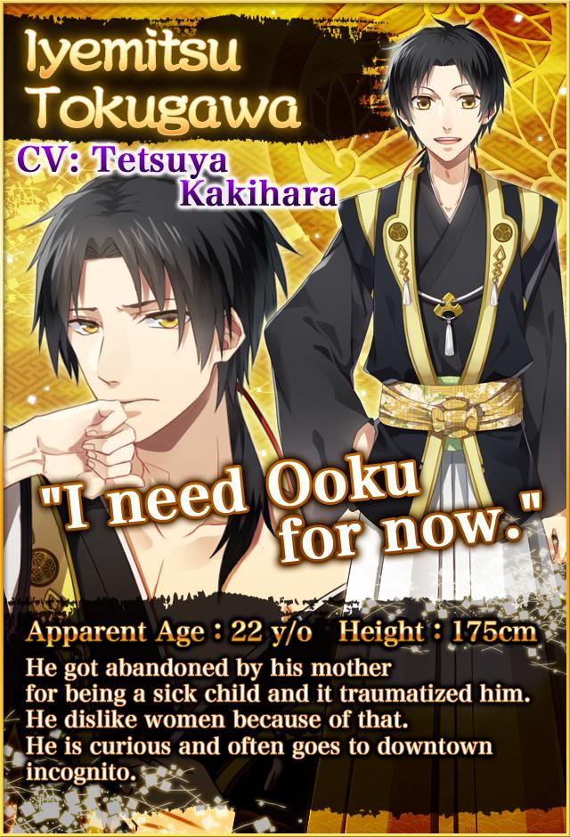[Japanese Yaoi Game] Yaoi Ooku: Distorted Love Iyemitsu Tokugawa CV. Tetsuya Kakihara Kasuga CV. Yusuke Shirai Oman CV. Makoto Naruse Masakatsu Inaba CV. Daisuke Ishida The wartime was over and the Tokugawa clan started governing the Edo era. Iyemitsu Tokugawa has become the third Shogun. 【Kasuga】 Forbidden relationship with super sadistic older brother. His long suppressed distorted love toward his younger brother finally reaches the limit and… 【Oman】 Master-Servant Relationship. Crazy love gets Iyemitsu... When Oman gets abused by his longing master, his mind crosses the border to become a beast and…