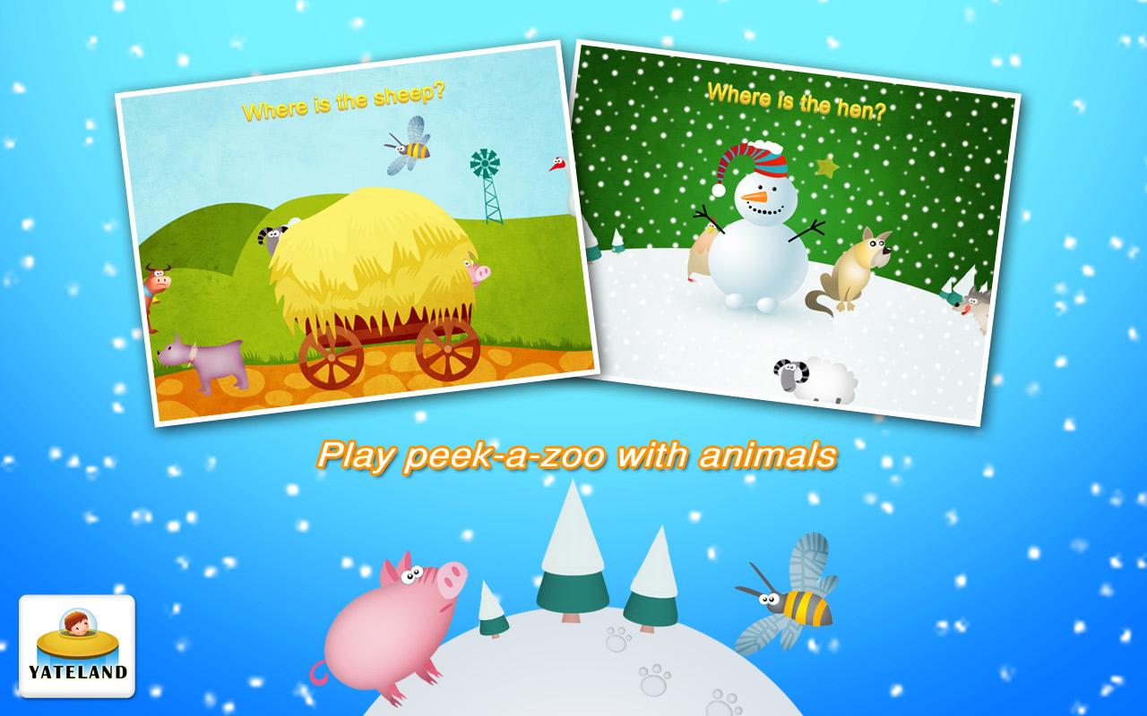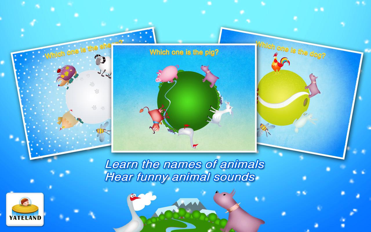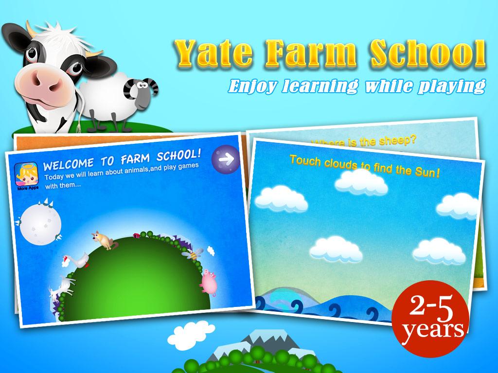 Yate Farm School, special design for toddlers. By completing different tasks, toddlers will learn about animals living on the farm. Enjoy learning while playing more than 30 games with animals and answering questions. * PLEASE NOTE: This apps is designed and intended for children age 2-5. This is a farm planet. Animals live happily together, stories happen every day among them. Sometimes, they also face problems. Could you help them to solve them? It contains 30 different mini games including: ● Learn the names of animals: Pig, cow, sheep, goat, hen ,rooster, duck, goose, dog, hedgehog, bee, wolf ● Hear funny animal sounds ● Play games with the animals , and help them solve their problems: - Spring, touch the cloud to find the sun. - Summer, a storm is coming, help the animals to hide. - Autumn, animals want to play peek-a- zoo with you. They are hiding behind a haystack. Can you find them? - Winter, can you find who is hiding behind the snowman and tree? - The Apples are ripe. Little hedgehog needs to collect them all. Can you help him? - The tree needs rain to grow up. Move the cloud, and the rain falls.The little tree grows up; the planet becomes green; flowers bloom, and the will rainbow will appear. - It’s snowing! Sheep was surrounded by wolves. Touch the wolves to protect the sheep. - Little pig had a wish to eat 10 cakes, can you help him? - Hen had 3 eggs. Help the chicken out of the shell ● Discover surprises like the house can fly in the sky with balloons FEATURES: √ 30 different mini-games to play with √ Fantastic original artwork! √ Fun sounds and animations! √ Kid-friendly interface! - No third-party advertising - No in-app purchases If you like Farm School – try our other kids' apps!