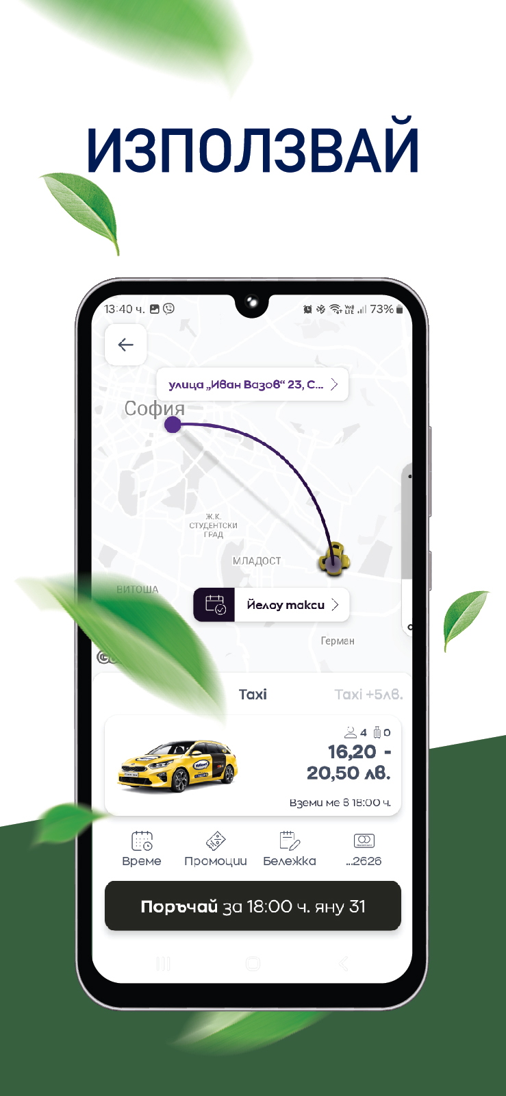Yellow Taxi - Travel easily, quickly and calmly! Look for us in your city! Yellow Taxi is a leading taxi company in Sofia with many years of experience, providing the opportunity to quickly order a taxi. With more than 6 million satisfied customers a year, we provide unsurpassed quality in our services. Our taxi app allows you to place an order wherever and whenever you want. Main features of the app: * Quick taxi ordering: With a few taps, you can request a taxi from anywhere in the city, and the car will arrive in the shortest possible time. * Real-time tracking: Track the location of your taxi for greater convenience and security. * Direct connection with the driver: Easily contact your driver to clarify details about the trip. * Add intermediate addresses: Plan your route with the ability to add intermediate stops. * e-Taxi option: You have the option to order an electric taxi. Payment methods: * By credit or debit card directly through the app * Via POS terminal in the taxi * With electronic vouchers (for corporate customers) * Cash payment Download the Yellow Taxi app and take advantage of all these amenities for a more pleasant trip. It's our pleasure! Contact us Website: www.yellow333.com Phone for orders: 02/91119