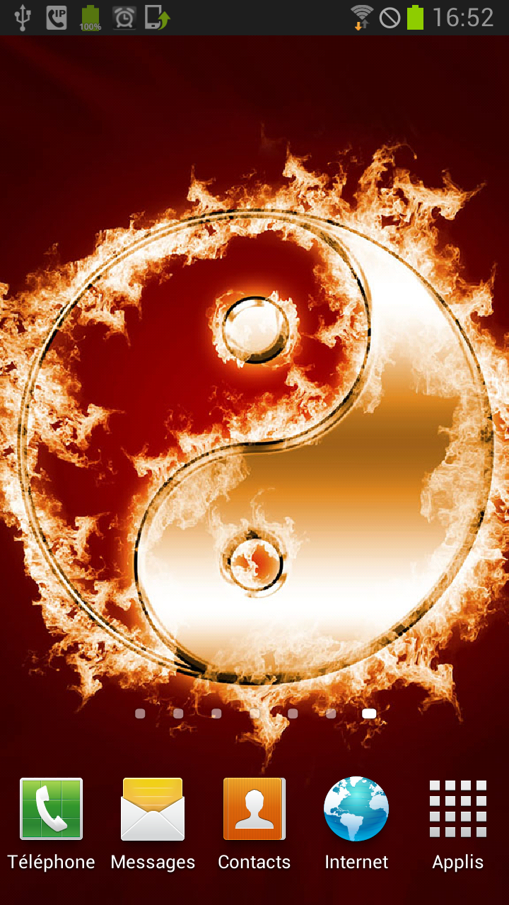 "Ying Yang in Fire Magic FX" is an original and surprising live wallpaper. Discover without further delay, the special touch effect named "Water Ripple Effect" and customize your phone screen with the beautiful Live Wallpaper. Animation : Your screen becomes water simply passing the finger over. Touch or tap the screen for it becomes a water or a wave movement appears on the screen. More you touch the screen, the greater water ripple effect is important. After download: Press long on the phone screen, choose the live wallpaper section and then choose your great new live wallpaper to set it on your screen. or you can to follow theses instructions : Home -> Menu -> Parameters -> Wallpapers -> Live Wallpapers Live Wallpapers Settings : Double Tap: Open Settings with Double Tap. Simulate Swipe 3D Parallax Effect Random riplles Effect Special Effect Features: - Live Wallpaper, - water ripples effects, - 3d parallax effect - multi-touch effect, - support most resolutions including Android tablet, - support landscape and portrait screen mode, - use 3D hardware to render images, save battery Warning: This free application has a system of no intrusive ads. Our live wallpapers contain no icon ads and no notifications. Your phone will not be subject to any virus. All the permissions are required only for the ads and are handled by trusted providers. This live wallpaper has been tested on latest devices such as Samsung Galaxy S3, S4, Nexus 7, HTC Desire S, Sony Xperia S and Asus Prime Transformer. Don't hesitate to contact us by Email, if your phone is not supported or if you encounter any problems. We will respond to your request as quickly as possible.