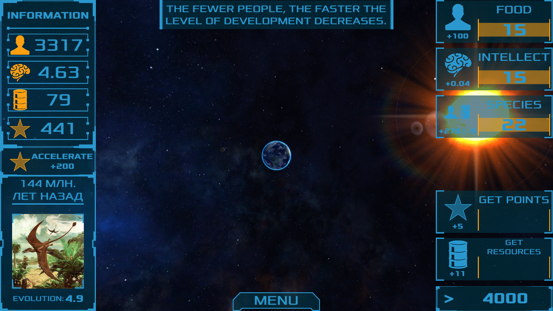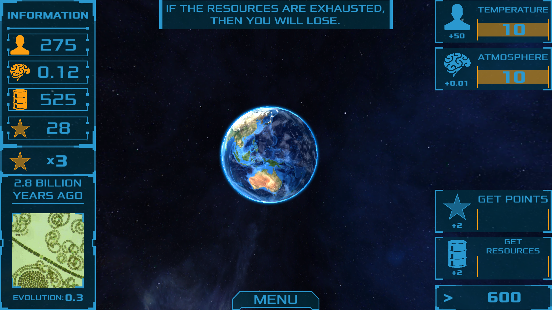 Did you want to feel like a Higher Power? Then this app is just for you! Together with Your Planet, you can experience all the delights of the outer space, as well as play an evolution on your own planet. Not so much for this and you need: in time to press on the buttons to improve conditions, monitor the resources of the planet and destroy meteorites aspiring to your planet.