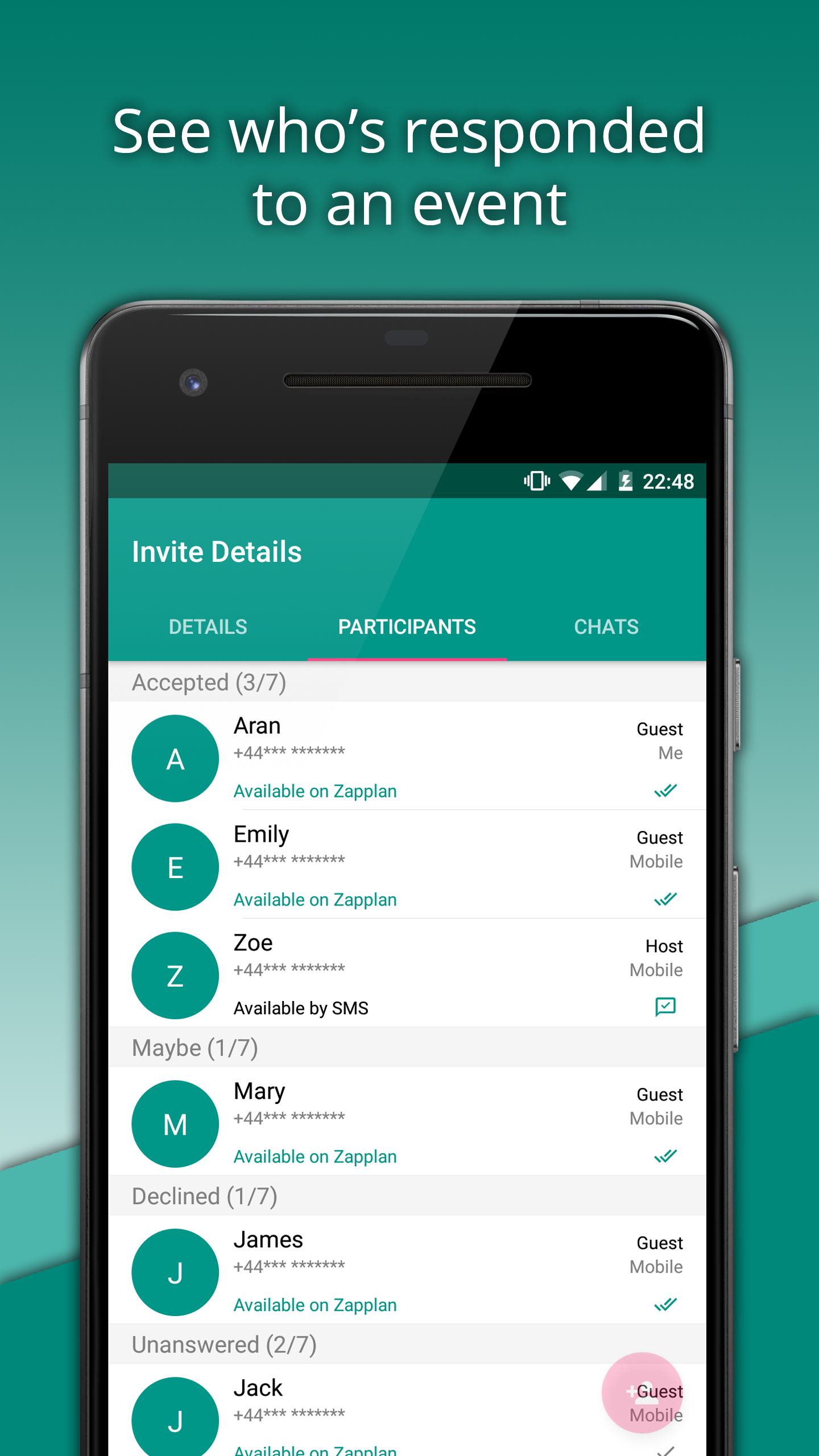 No App Required to RSVP. Invitees can respond to your event even if they don’t have the app installed. Zapplan sends an SMS with a web-link so they can respond.