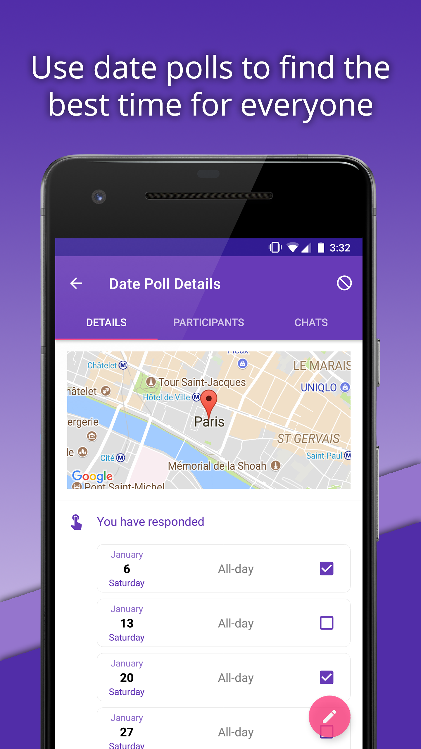 Real-time Notifications. Receive updates when your friends and family respond.